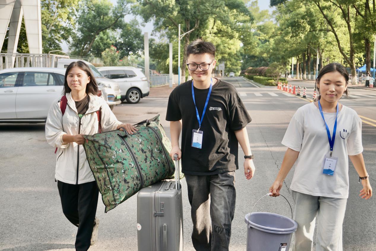 “这里不允许掉头,请前面右转。”“我帮你拿行李!我们先去体育馆领取军训服装,再去宿舍。”学校组织300余名学生志愿者投入迎新服务工作。校园内,每隔两米就有志愿者值守,他们或指挥交通、引导方向,或协助搬运行李、解答疑问。同时,学工、保卫、后勤、财务、医院等工作人员坚守岗位,为新生提供全面、优质、便捷的服务。“从出站到入住,一路都有志愿者帮忙,真的太周到了!”来自西藏拉萨的新生格堆曲扎经历近一天长途跋涉才抵达校园。报到时他不慎将钥匙落在宿舍,管理员迅速赶来帮他开门。“虽然离家千里,但学校的关怀让我对大学生活充满期待!”