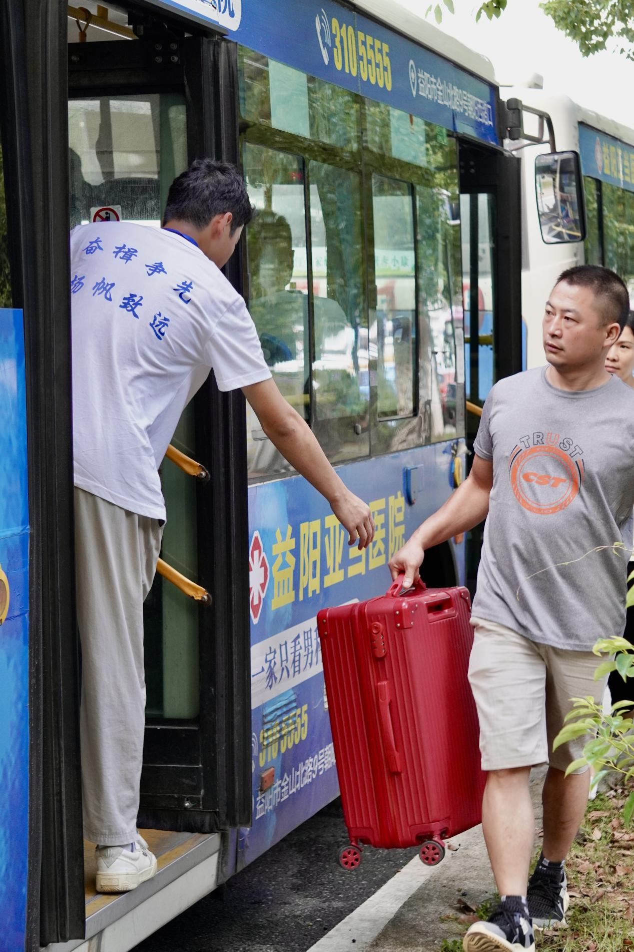 9月11日下午2时,学校在益阳火车站、益阳高铁南站、朝阳汽车站、汽车北站等车站设置的迎新接待站已全部就位。迎新期内,学校调度18辆迎新专用大巴,全天循环运行,在各大站点和校区之间不间断接送新生及家长。“益阳职院的同学请往这边走!”接待组人员每天从清晨6点值守至深夜12点,帮助新生及家长顺利登车、安心到校。不少家长表示:“一下车就看到学校的接待点,真的很贴心!”