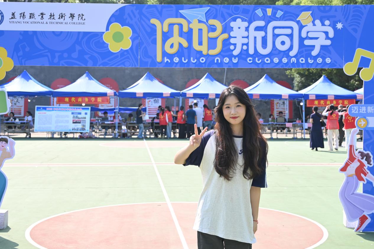 “你好,新同学!”——篮球场上,鲜亮的迎新打卡点迎来一批又一批青春的面孔。“遇见更好的自己”“乘风破浪”等创意展板妙趣横生,不少新生与家人驻足合影,记录大学生涯的起点。