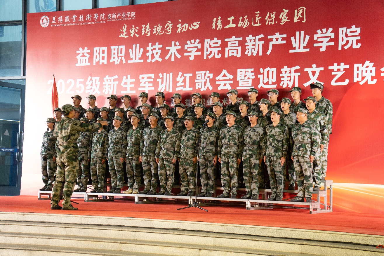 “五星红旗迎风飘扬,胜利歌声多么响亮......”9月26日晚,深情旋律响彻益阳职业技术学院高新产业学院的夜空。近千名2025级新生齐聚一堂,在“迷彩铸魂守初心,精工砺匠报家国”军训红歌会暨迎新晚会上,用歌声交织成一片“红色”海洋,开启大学时代的崭新篇章。校领导、教师代表与新生共上这堂沉浸式的“行走”思政课。