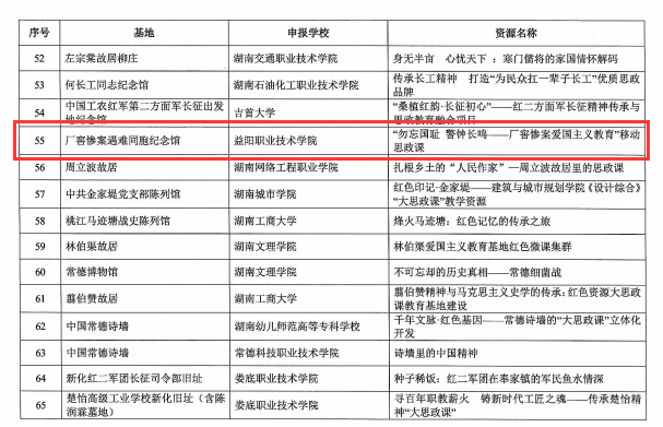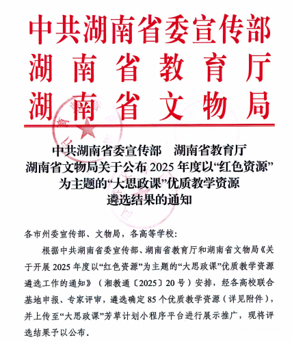 近日,中共湖南省委宣传部、湖南省教育厅、湖南省文物局联合公布2025年度以“红色资源”为主题的“大思政课”优质教学资源遴选结果,益阳职业技术学院马克思主义学院申报的《“勿忘国耻 警钟长鸣——厂窖惨案爱国主义教育”移动思政课》成功入选。