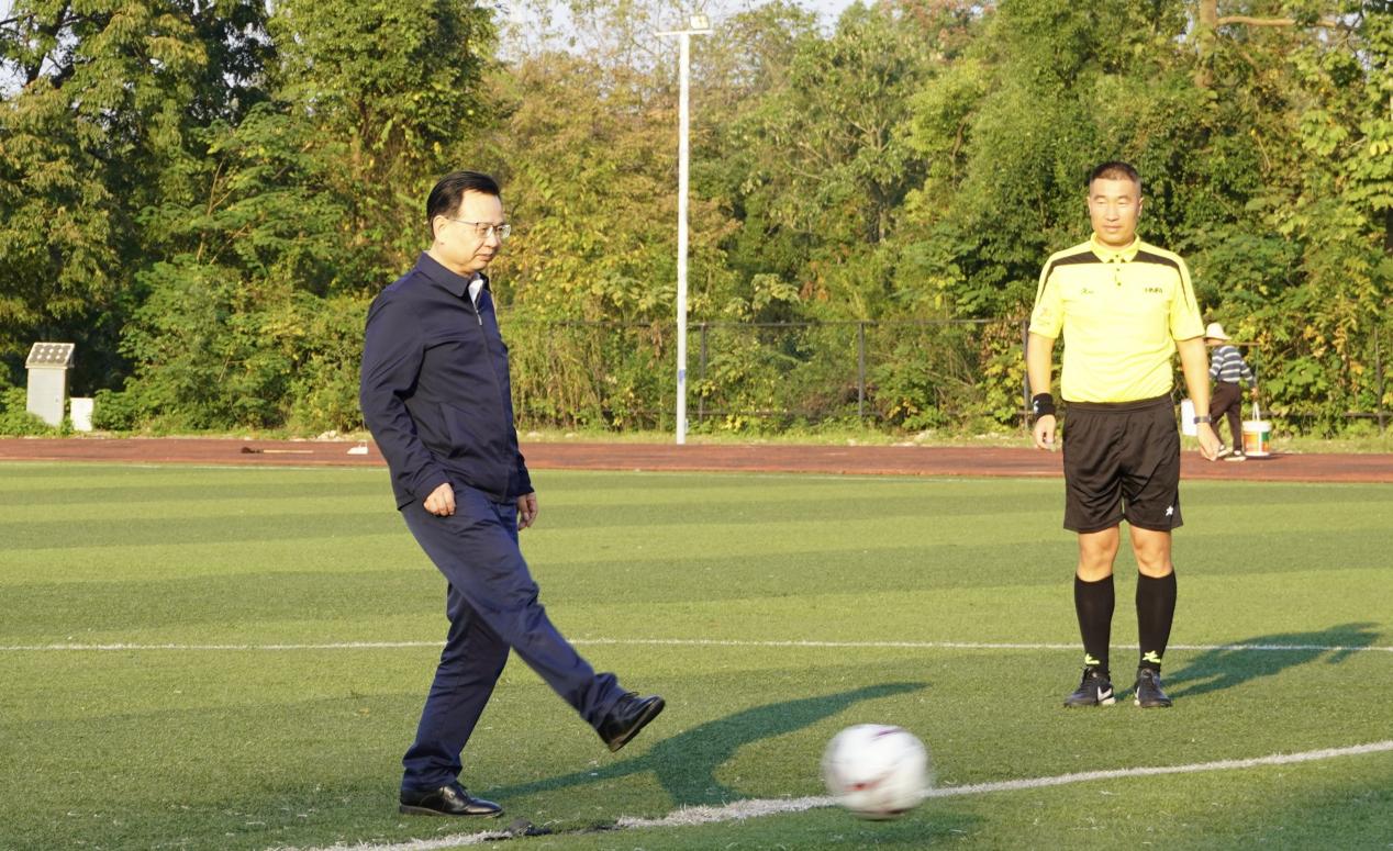 11月4日,益阳职业技术学院“迎新杯”足球决赛在足球场落幕。学校党委副书记、校长黄维民开球,湘超主裁判、中超现役裁判员张彦斌受邀执裁。经过两小时的激烈角逐,高新产业学院以3:1战胜经济管理学院,捧得桂冠。