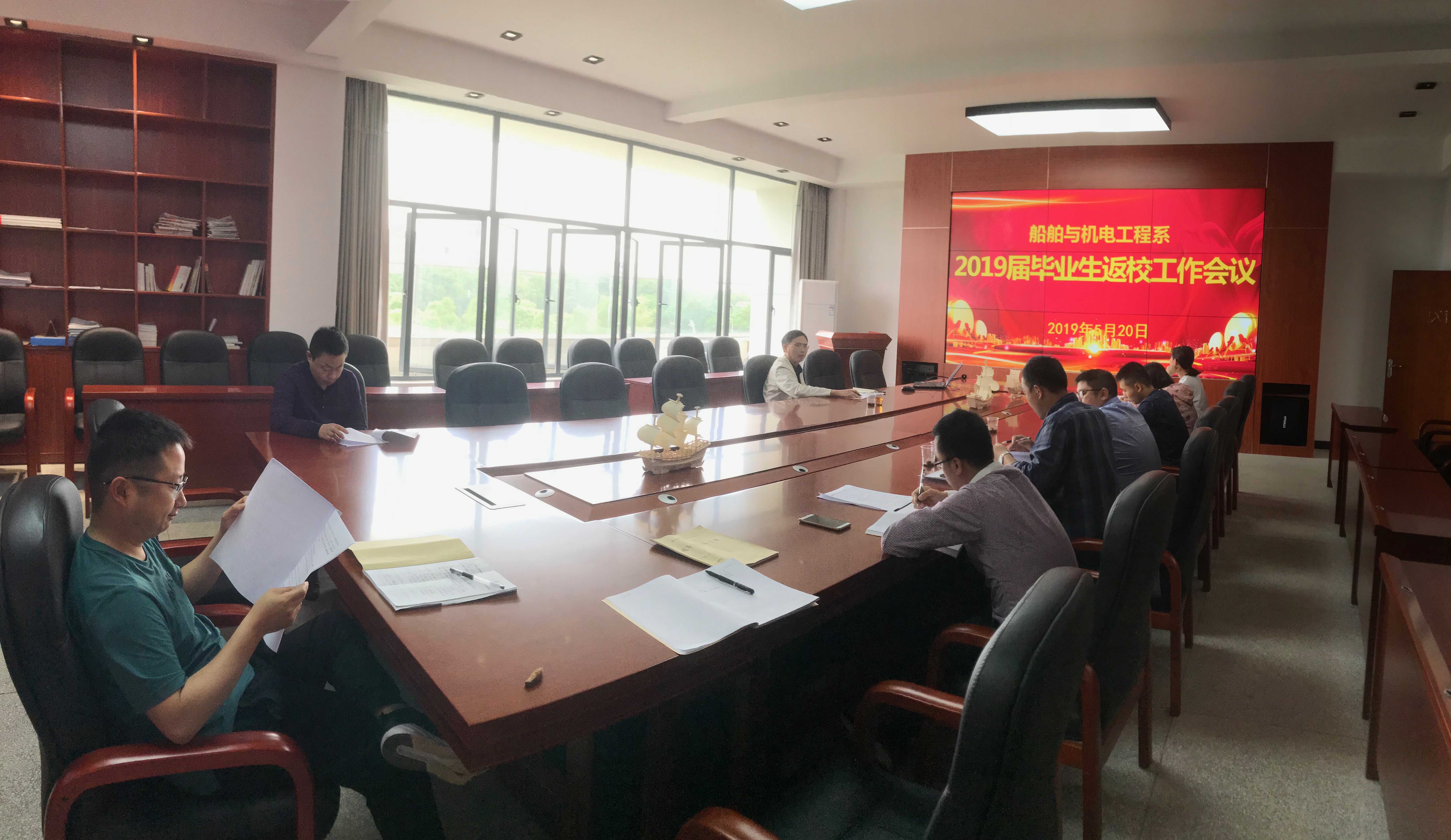 2019届毕业生返校在即,为切实做好毕业生返校工作、文明离校教育工作和就业工作,船舶与机电工程系于5月20日中午1点在船舶大楼,召开毕业生工作会议,部署毕业生相关工作。系部徐晓昂主任、曾庆军、崔璨、龚德贤、唐波、刘屈钱以及毕业班辅导员等领导老师参加会议,会议由徐晓昂主任主持。