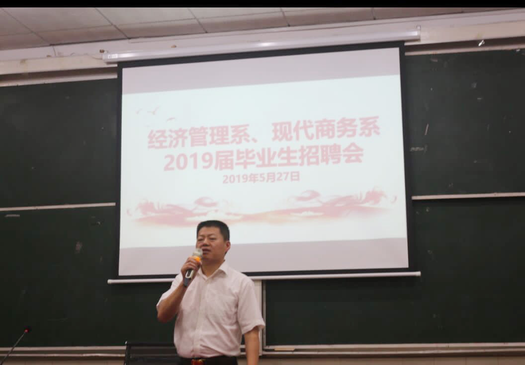 为切实做好我院毕业生就业工作,大力构建毕业生与用人单位的交流平台,积极为用人单位输送人才。经管系于5月27日上午9点在二教102教室举行了2019届毕业生招聘会。学院领导对此次招聘会高度关心和支持,学院党委委员、副院长吴自力老师、经管系系主任姚子凤老师、学工办主任杨芳老师、毕业班辅导员都亲自到场组织毕业生有序应聘。湖南永雄资产管理集团、华拓公司、大地保险公司、深圳百果园、中国人寿集团、飞利浦益阳专卖店、建信人寿湖南分公司益阳服务团队、湖南天之济人力资源有限公司、益阳市汇友科技有限公司、上海宝燕公司、广州中商控股有限公司、谭州教育等公司代表应邀参加了招聘会。