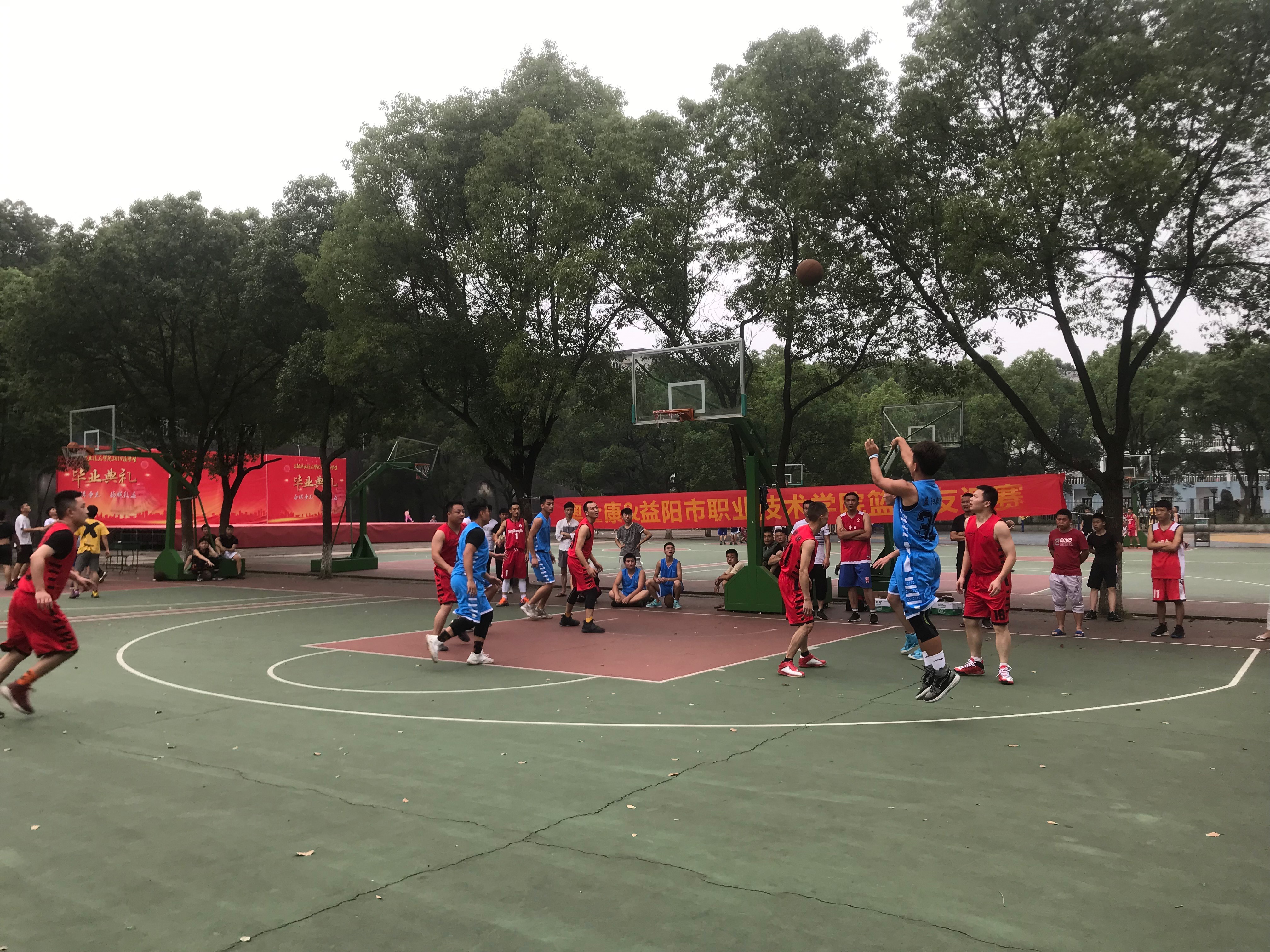 双方球员在篮球场进行紧张的热身,随着裁判的一声哨响,赛场上队员们积极投入、全力拼抢。在比赛过程中,裁判员秉公执法,严肃认真,保证了比赛的公平公正。观看比赛的同学们和奥士康的拉拉队们,也情绪高涨的为比赛喝彩呐喊。经过一番激烈的角逐,学生队领先几分,以微小的优势赢得了比赛。