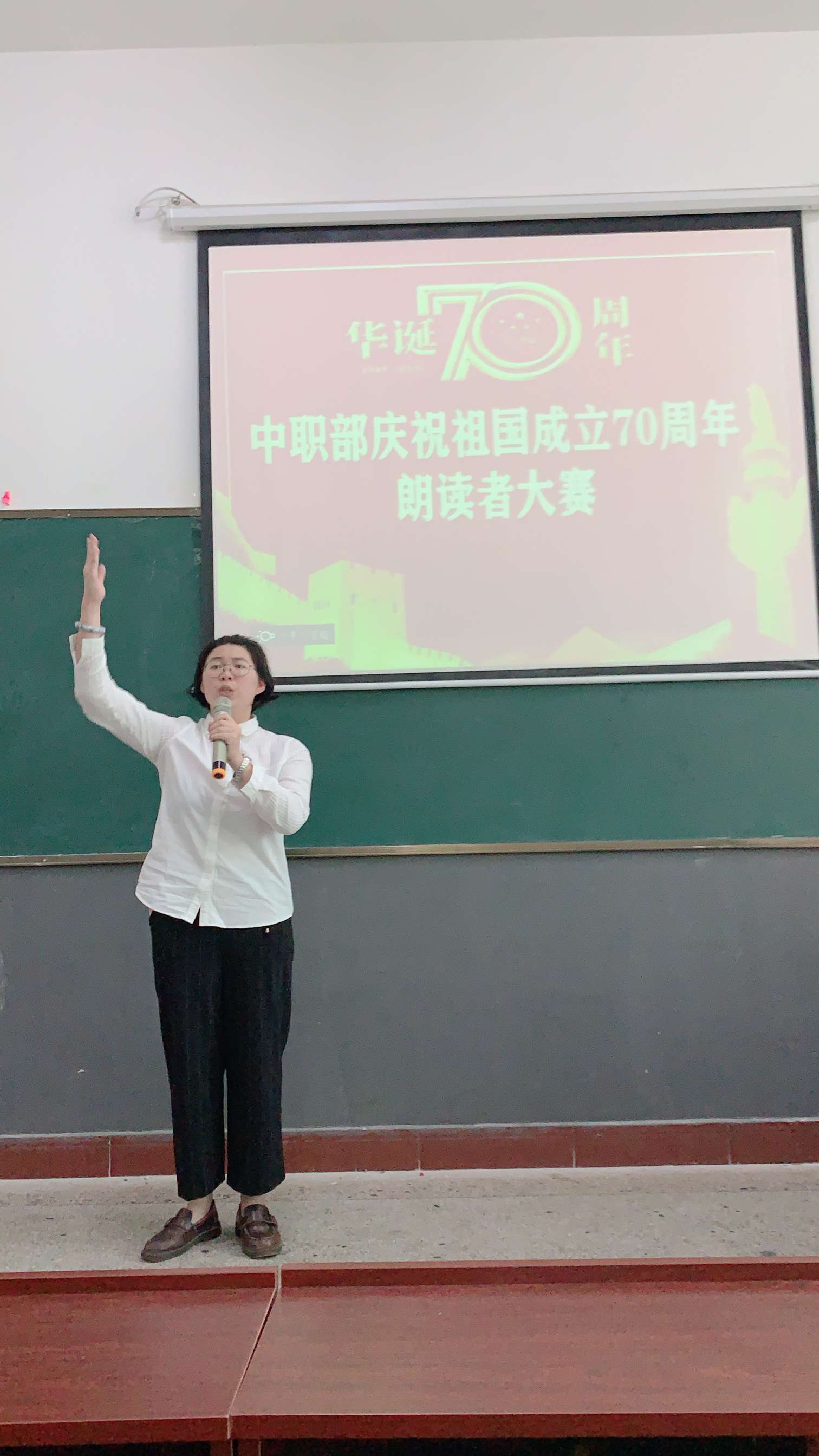 5月28日下午3点,中职部在4教107举办以庆祝新中国成立70周年朗读者比赛决赛。本次比赛由刘宇峰老师,芮杨老师,张嫔靓老师,谢望舒老师,姚梦涵老师担任评委。班主任和各班级代表前往观看比赛。 在经过初赛环节老师示范,评委的点评指导,进入到决赛的9位同学的整体水平提高了很多,一个个年轻生动的面孔,在舞台上自信而舒展,倾情抒发着对祖国的热爱。李婷同学朗读了《写给祖国母亲的歌》,在台上,她坚定自如、眼神坚毅,将这首舒缓、有意境的诗歌演绎得引人入胜。龚泓献同学用一段慷慨激昂的脱稿朗读展示了认真的态度,也展现了中职学子阳光帅气的风貌。李柔玥同学则是字正腔圆、情感细腻,深深的将爱国情融入每个字眼,感染着现场的所有观众和评委。贺智慧用声音区分男女角色,时而深情款款,时而平缓克制,时而抑扬顿挫,时而高亢激昂,这是她足够自信的表现,同时也是一场酣畅淋漓的表演。彭志、夏美兢、姚英俊共同朗读《新青年爱祖国》,作为学院诵读比赛的活跃分子,他们用越来越成熟的表演,利用音乐与角色的相结合,展现了一个完整的作品。