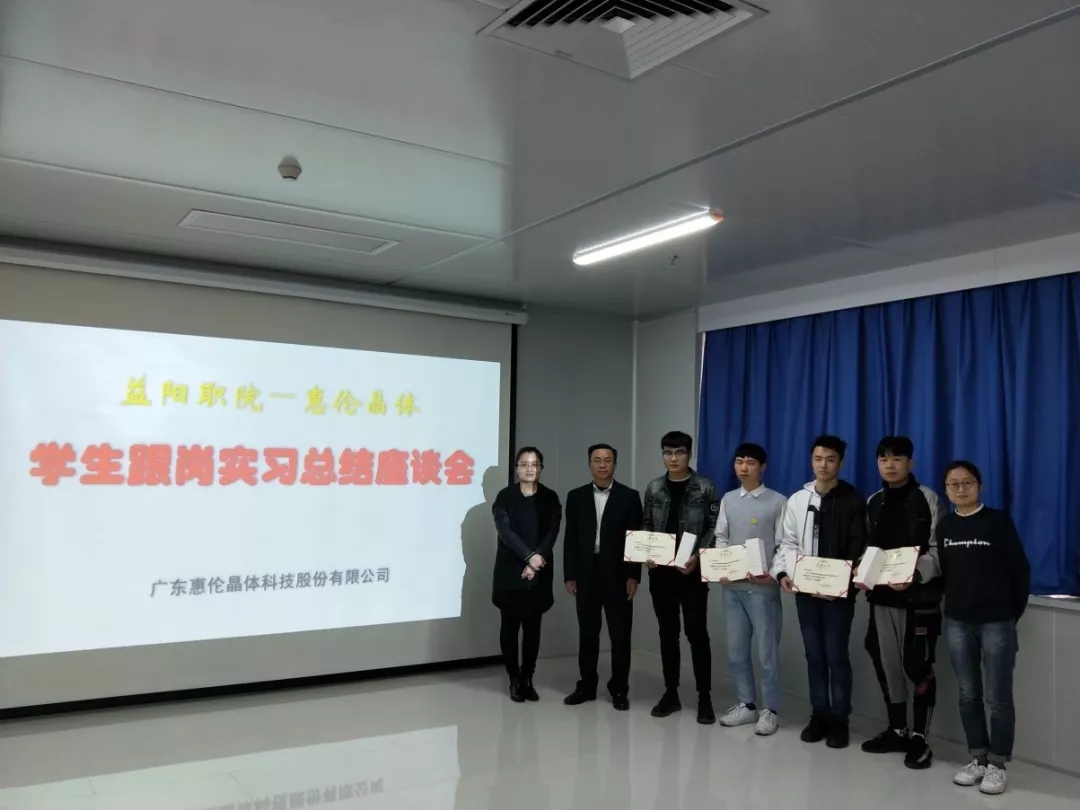 2018年12月11日上午,机电6201班跟岗实习完满结束,广东惠伦晶体科技股份有限公司在公司会议室召开了总结座谈会并举行优秀实习生的表彰活动。
