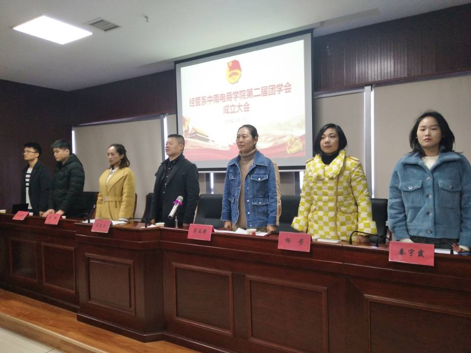 2018年12月17日,中南电商学院第二届团学会成立大会在中南电商产业园第六会议室隆重举行。经管系主任吴自力、经管系副主任蒋亚嫦、学生处副处长陈瑛、团委副书记李志华、经管系学工办主任杨芳出席大会。大会由第二届团学会副书记肖丹丹主持。