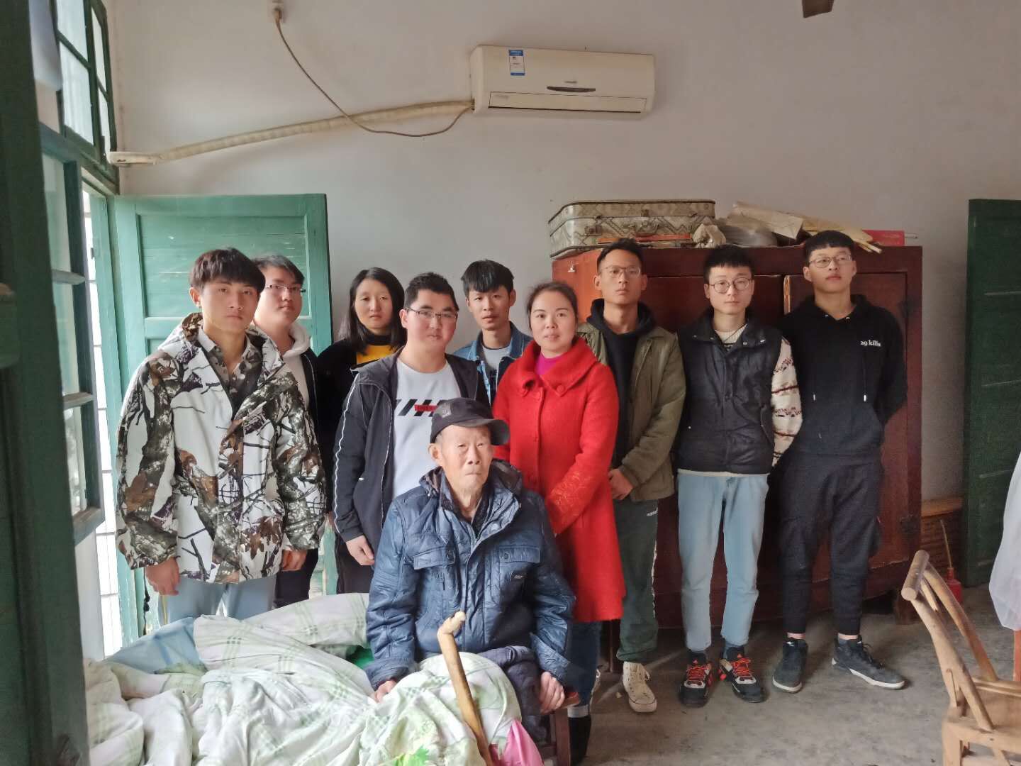 12月18日下午,我系学生党员和入党积极分子代表徐群丽、和琳晋等同学在李盛兰老师、刘丰老师的带领下来到了资阳区迎风桥镇新塘村,探访慰问越战老兵曾神保,为老兵送上大米、植物油等慰问品,并祝福老兵健康长寿。