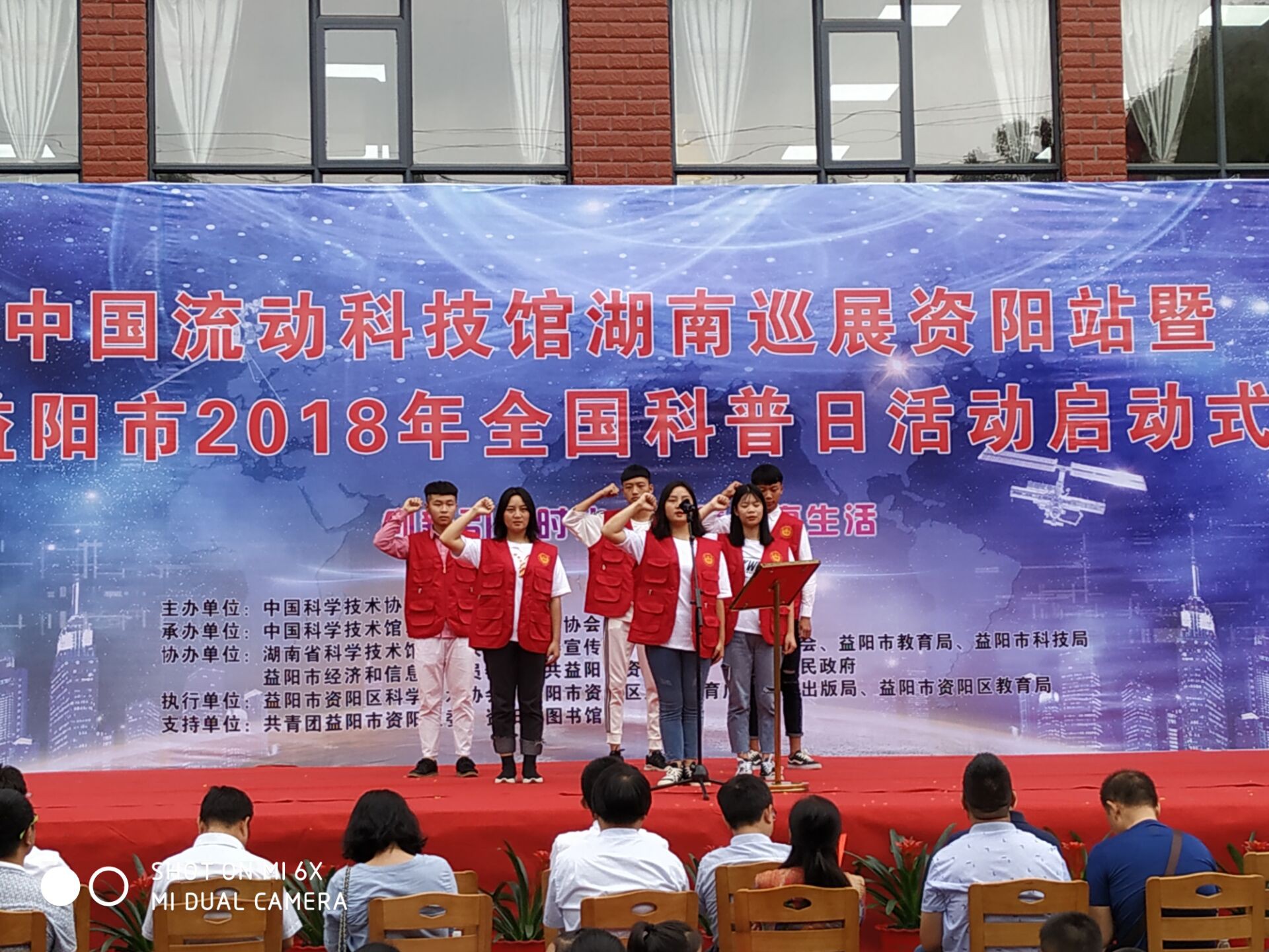 9月21日上午,资阳区举行2018年中国流动科技馆湖南巡展资阳站暨益阳市2018年全国科普日活动启动仪式,我院中职部青年志愿者应邀出席活动,并为本次活动进行科普志愿者宣誓和参与其他志愿服务