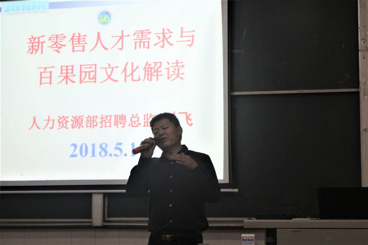 2018年5月10日,深圳百果园实业发展有限公司招聘总监刘飞一行来到益阳职业技术学院经济管理系、中南电商学院开展2016级经信、电商专业实习招聘会。经管系系主任吴自力、学工办赵昭仪老师、电商名师工作室曾文华老师、辅导员廖蕾老师、杨芳老师、彭朝霞老师及经信专业16、17级、电商专业16、17级全体同学参加了会议。本次大会共分两轮进行,第一轮在经管系二教102顺利举行。 大会伊始,由吴自力老师为大家讲解新零售人才需求与百果园文化解读,关于学生进入企业学习的基本安排,百果园与学校的相关联系,还通知关于这次工作的面试筛选时间,以及考试相关问题。 随后,由百果园总监刘飞刘总给同学们讲解关于百果园的未来发展趋势和规划。接近尾声,讨论环节有同学陆续提出问题,刘总也一一给出相对应的答复,辅导员廖蕾老师提出:“很多人说百果园不专业,那这个问题是真是假?”刘总回复:“公司从2001年创业至今近17个年头,在专业上面是毋容置疑的,专业的团队包括:种子的研发与栽培、种植,中端产品的配送物流冷链,终端水果的打包销售等等,因为具备这样专业的团队才能让百果园屹立于水果行业的龙头老大”。会上,同学们的疑问都得到了刘总的耐心解答。5月11日上午,在二教101党建办公室完成了经信16101班全体同学的招聘面试。 5月11日下午,百果园的企业宣讲在中南电商学院顺利进行。首先由刘总对公司做了详细介绍并对同学们提出了适应工作岗位的技能要求,紧接着陈经理对同学们在公司的生活环境和待遇做了讲解。经过了解后同学们根据自己意愿积极踊跃参加了面试,努力为自己的未来打开一扇精彩的门。 此次招聘活动的成功举办是经管系有计划、有目标地开展好年前的毕业生就业工作的体现,我系抓住校园招聘会的机会,为毕业生做好实习就业服务工作。同时也使同学们得到了充分展现自我的机会,让同学们认清了自身的不足,在以后的工作和生活中将有目的地锻炼自身各方面的综合才能。