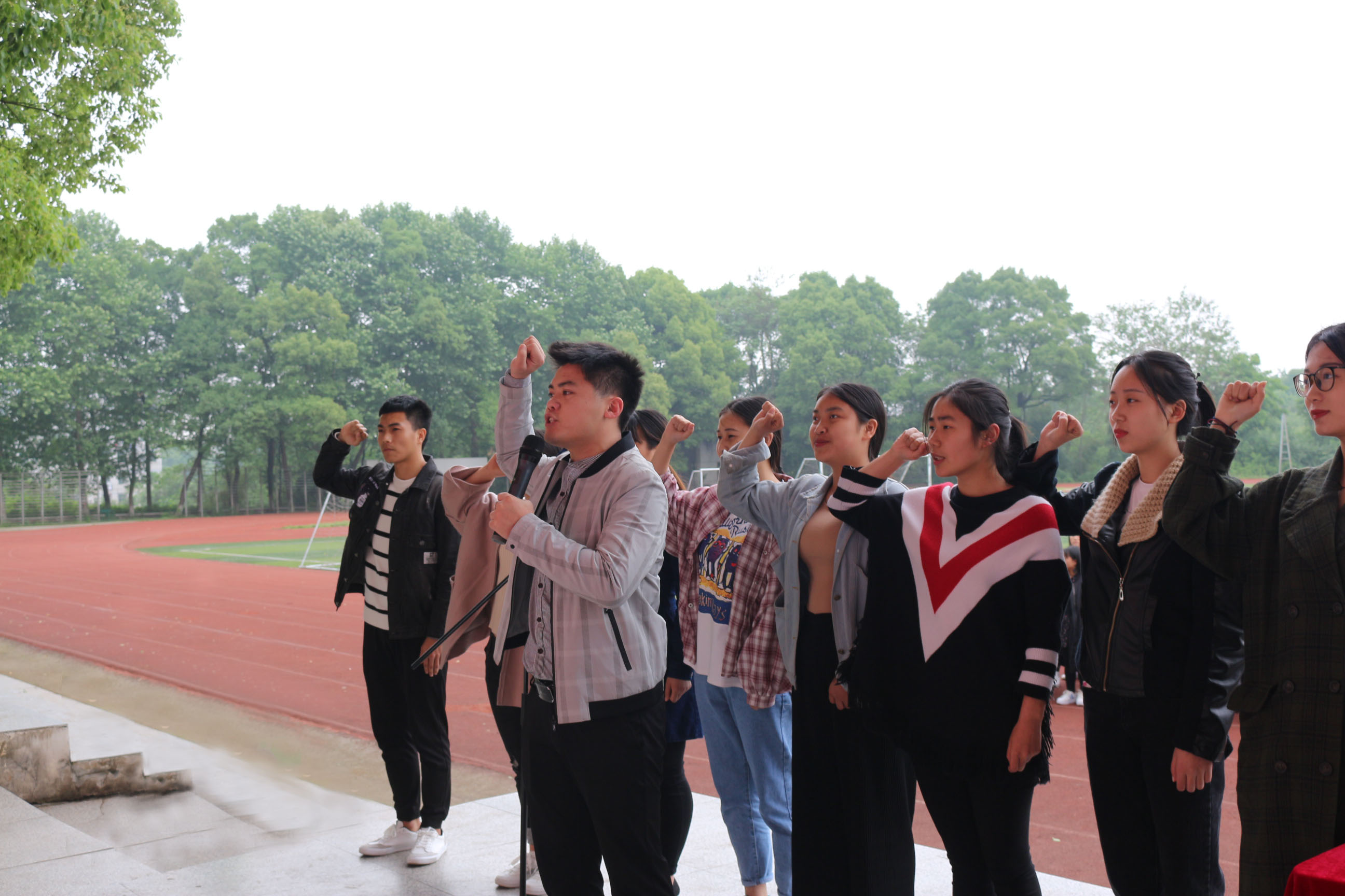 2018年4月24日下午14:00点,经济管理系2017年下学期新党员宣誓仪式暨总结表彰大会在学院田径场隆重举行,莅临本次大会的领导有:学院党委成员,学院副院长杨建华老师、学生处处长姚子凤老师、经管系主任吴自力老师、经管系党总支书记唐超文老师、经管系副主任蒋亚嫦老师、学工办赵昭仪老师,经管系全体辅导员及16、17级全体同学。本次大会由经管系党总支书记唐超文老师主持。 大会伊始,全体起立,奏国歌,在庄严的国歌声中大会拉开帷幕。首先,由杨建华老师宣读学院党委对新一批党员入党的批复文件。经管系学生党支部宣传委员李志华老师带领王媛等9名新党员宣誓。接下来由经管系系主任吴自力老师作上学期工作总结,对到课率优秀的班级和获得三好学生标兵、优秀学生干部、第三届经管之星的同学提出表扬。经管系副主任蒋亚嫦老师宣读了经管之星石泽芳等10人名单。杨建华院长、唐超文书记、吴自力主任、蒋亚嫦主任为获奖学生颁奖、合影。颁奖过后由经管系优秀党员代表颜梦华、三好学生标兵代表杨灏澜、优秀干部标兵代表罗强分别进行发言。 最后,杨建华院长在我系工作总结表彰大会上做了重要讲话:同学们的思想决定行为,行为决定态度,态度决定成败。思想的改变是决定人生的定位。大家首先要端正学习态度,找好人生定位。目标是方向和动力。每一个成功的背后都必然有一个小的目标,只有不断朝着自己小的目标迈进,人生才会充满动力,这是个人成长的基本条件。树立自我榜样,不断鞭策自己,练好自我本领,找准人生定位。杨院长还向受表彰的先进班级和个人表示热烈的祝贺,向长期工作在一线岗位的老师们表示衷心的感谢。一段征程已经结束,我们收获颇多,下一段征程已经开始,我们踌躇满志。经济管理系2017年下学期新党员宣誓仪式暨总结表彰大会圆满结束。