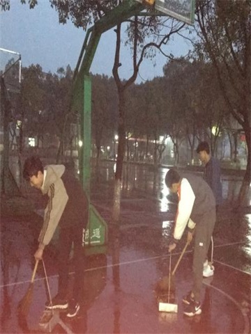 17级计应班的同学组织打扫了篮球场。因为操场是同学们主要的活动场地,帮助同学们们创造一个卫生的活动环境在他们看来是很有意义的一件事。打扫完后看到花台上有不少烟头,又开始不由分说的就开始清理。清理烟头可比扫地要难得多,因为没有合适的工具,只能用餐巾纸将一根根烟头捡出。