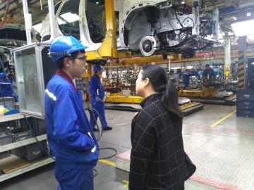 3月28日上午孟部长一行在奇瑞公司相关负责人的带领下来到奇瑞公司总部参观。参观过程中孟部长与学生亲切交流,了解跟岗实习情况,并在参观后与奇瑞二总车间郑主任进行了详谈。郑主任认真详细介绍了每个岗位的工作性质,并对我部跟岗实习学生的学习、工作情况给予积极肯定。