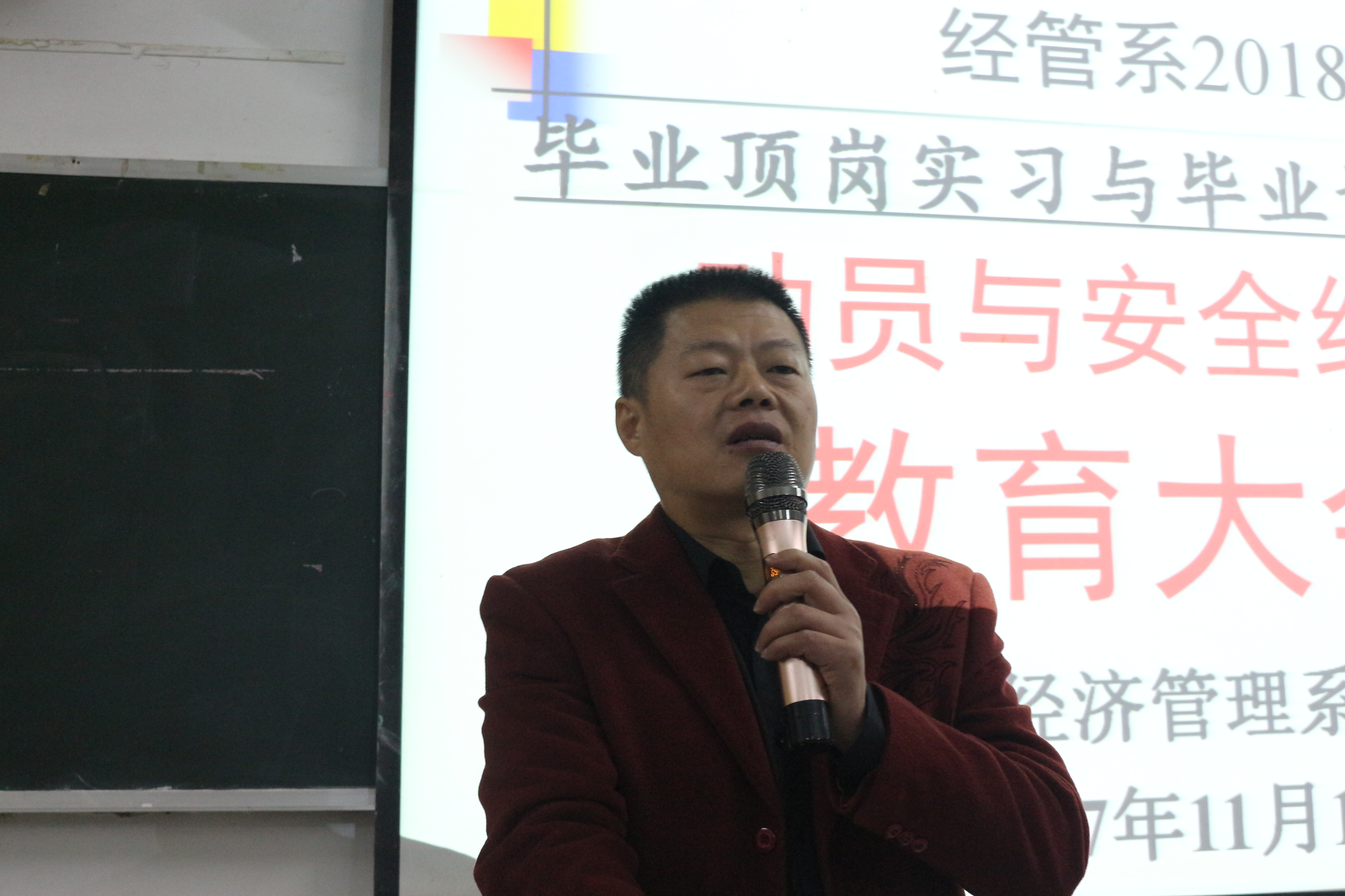 为了贯彻落实学院教学任务和就业工作精神。2017年11月16日下午2:30经管系在二教206举办毕业顶岗实习与毕业设计指导动员与安全纪律大会。此次大会由李志华老师主持,经管系系主任吴自立主讲,参加本次大会的有:经管系系副主任蒋娅嫦及各毕业班级辅导员,各班毕业生全体成员到场。 吴主任首先突出讲解了毕业顶岗实习的重要性。从顶岗实习的政策依据及顶岗实习的重要意义两个方面展开了详细的讲解,顶岗实习是教育部下发的关于高职高专院校人才培养工作水平评估指标补充规定,要求学生顶岗实习时间不得超过半年。这一规定有助于大专院校的教学安排,也对高职学生职业素质方面的强化训练,使学生提前了解社会,增强岗位意识。让学生从大学生活切换到现实社会当中去,要适应社会的要求,在思想观念上适应社会。 随后讲到安全问题:由于刚出学校,学生们对角色的突然改变和对新环境的不适应使得他们容易陷入困惑和迷茫,首先是心理上不能够适应,学生一定要强化心里素质,不能轻易被打击。要提高自己的防骗能力很快的分辨是真是假,保护自身权利。 最后对毕业生们提出了要求:要求学生在外实习期间要经常关注学校主网站,保持与班主任联系;在工作中要有爱岗敬业吃苦耐劳的精神、要有严肃认真的态度,要主动学习科学管理技能和实践知识;要诚信待人,诚信就业,遵守单位规章制度;虚心学习,多发挥自己的优点! 本次动员大会强调了学生顶岗实习的重要性,明确了实习要求,使即将进入顶岗实习阶段的同学有了充分的思想准备,为顺利进入实习奠定了基础!