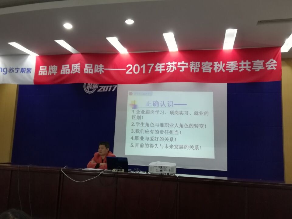 苏宁易购实训工作中 经管系吴主任、唐书记等时刻关注着在苏宁易购参与实习的学生们,鼓励大家要好好学习,借助此次实训,锻炼自己处理突发状况的能力,希望同学们在苏宁有一个美好的回忆,能够学有所成,学有所获,祝愿学生不忘初心,砥砺前行,顽强拼搏,实现自己的职业梦想。