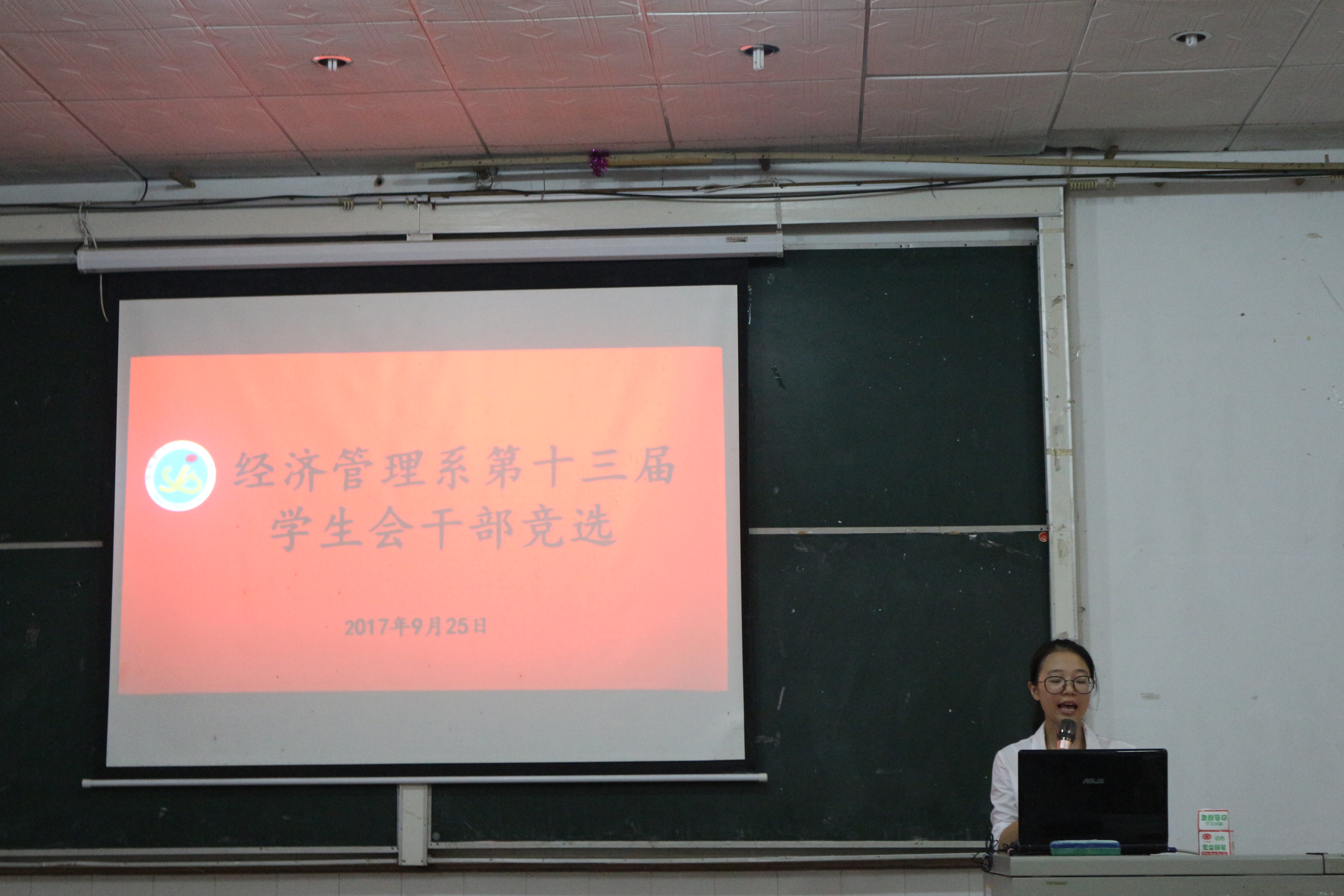 为了使学生工作更加出色,学生素质更进一步提高,25日下午16:10在二教102教室召开经管系“第十三届学生会干部换届竞选大会”。出席大会的有经管系党总支书记唐超文,经管系副主任蒋亚嫦老师、学工办赵昭仪老师等。 本场次主要针对学生会的部门进行竞选,参与竞选的干部共有30人,其中有12人参与经管系主席竞选,18人参与主席团分管下五个部门部长竞选。 各位竞选者主要围绕“自身优势、工作经验、工作规划”等方面进行了精彩的演讲。相比较于一年前在台上胆怯,脸红而言,今日在台上展现出自信的台风、流利的演讲、幽默的语言、新颖的观点都使人刮目相看。 最后,十二届主席周晓怡表示希望在接下来的工作中大家扎扎实实地开展工作,用行动来证明自己的能力,用行动来为学生会添彩。届时会根据老师的推荐及上一届部长的评价决出并公布最后竞选成功名单。敬请期待!(图/文 网宣部)