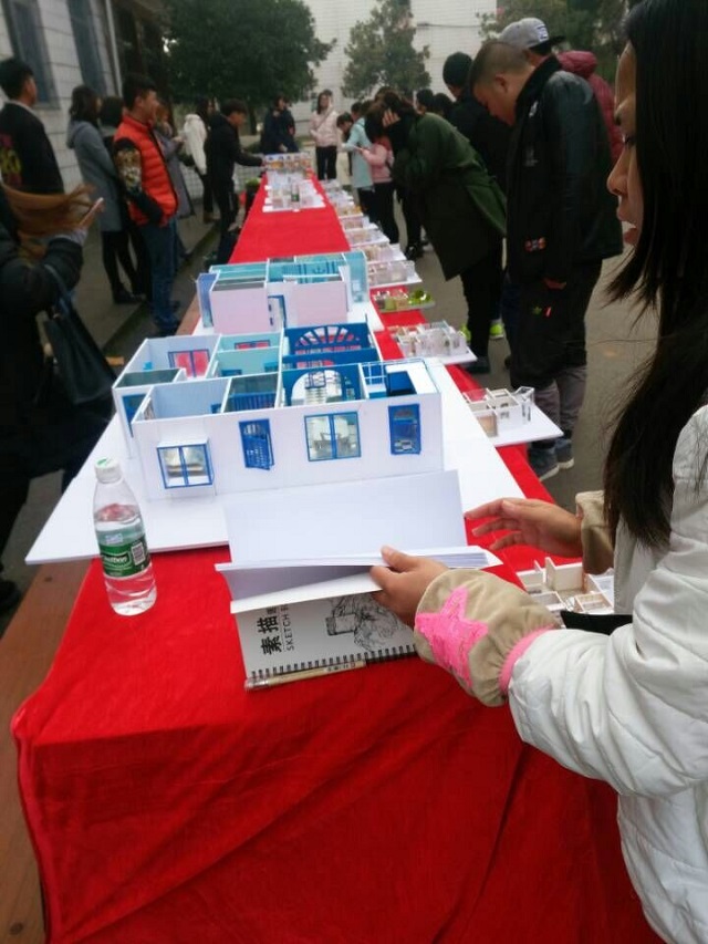 2016年12月15日我院生信系环艺专业于六教前坪开展了为期三天的“室内设计模型展”,此次模型展为15级环艺专业同学的课堂作业,其目的是为了更好的丰富学院校园文化建设,并且让更多的老师和同学了解环艺专业。 此次模型展得到了学院各级领导的关心与支持,展览现场也十分的热闹,虽然是在寒冷的冬天,虽然做的还是室外展,但依然有很多老师和同学莅临观展,大家十分肯定此次展览的作品,这对本专业学生也起到了很大的激励作用,相信在以后的学习中,我们能够给大家呈现更多更好的作品,相信环艺专业也会越来越好!