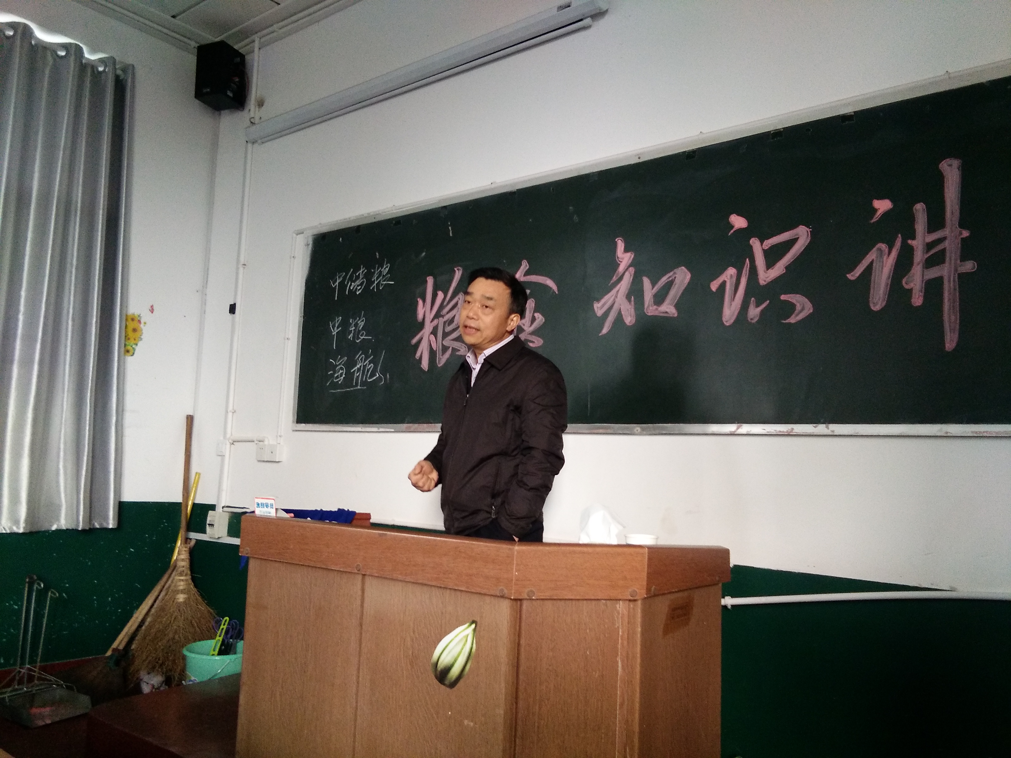 11月24日下午,生信系在1教404教室为粮食16101班举办了一场别开生面的粮食知识专题讲座。 讲座邀请了益阳市粮食局调控科张劲冲科长,张科长以“古老的粮食产业是永远的朝阳产业”为题,从古代的粮食生产情况开始,到国内外粮食的行情,到中央和地方的粮食政策,详细阐述了粮食行业的发展情况,以及粮食行业的光明未来,善意的提醒我们的学生:作为粮食行业未来的高素质技术技能型人才,肩负着粮食行业发展壮大的重任。他同时向同学们提出了:一要热爱粮食行业,二要能吃苦耐劳,三要有长远眼光,要有坚定的决心等六条希望。最后,在学生雷鸣般的掌声中,张科长结束了长达一个半小时的精彩演讲。 蔡建宇院长十分关心粮食16101班的学生和粮食专业的发展,非常关注张科长的这次讲座。他本来在外出差,不辞辛劳赶回来聆听这次讲座,并做了重要讲话。蔡院长从更高、更长远的角度向大家介绍了粮食行业的现状和未来,语重心长的叮嘱大家要吃得苦中苦,方能人上人,方能成就自己的一番大事业……