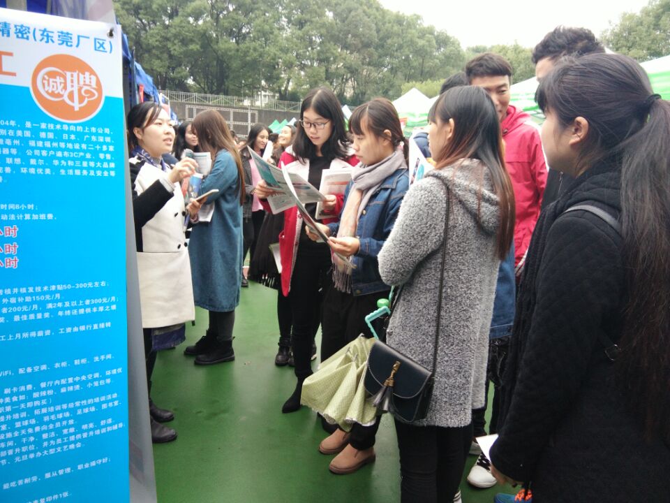 2016年11月8日,由益阳市人力资源和社会保障局、益阳市教育局大中专毕业生就业处主办,益阳职业技术学院承办的秋季招聘会在益阳职业技术学院篮球场举行。招聘会有中国大地财产保险股份有限公司、湖南汇盛科技有限公司、金煌装饰集团等近百家公司和17届毕业生及社会各界人士参加本次提名为“春风行动”的大型招聘会。 大会伊始,为了缓解各公司招聘人员舟车劳顿的疲劳,在绵绵细雨中我院为他们准备了视觉盛宴。由经管系、院舞蹈队、武术协会分别带来了精彩的演出…… 演出结束后就拉开了本次招聘会的大幕。我系17届毕业生都积极踊跃参加了这次招聘会,根据自己的就业意愿投出了一份份他们精心准备的求职简历,努力为自己的未来去打开一扇精彩的门。(文/图 邓金双)