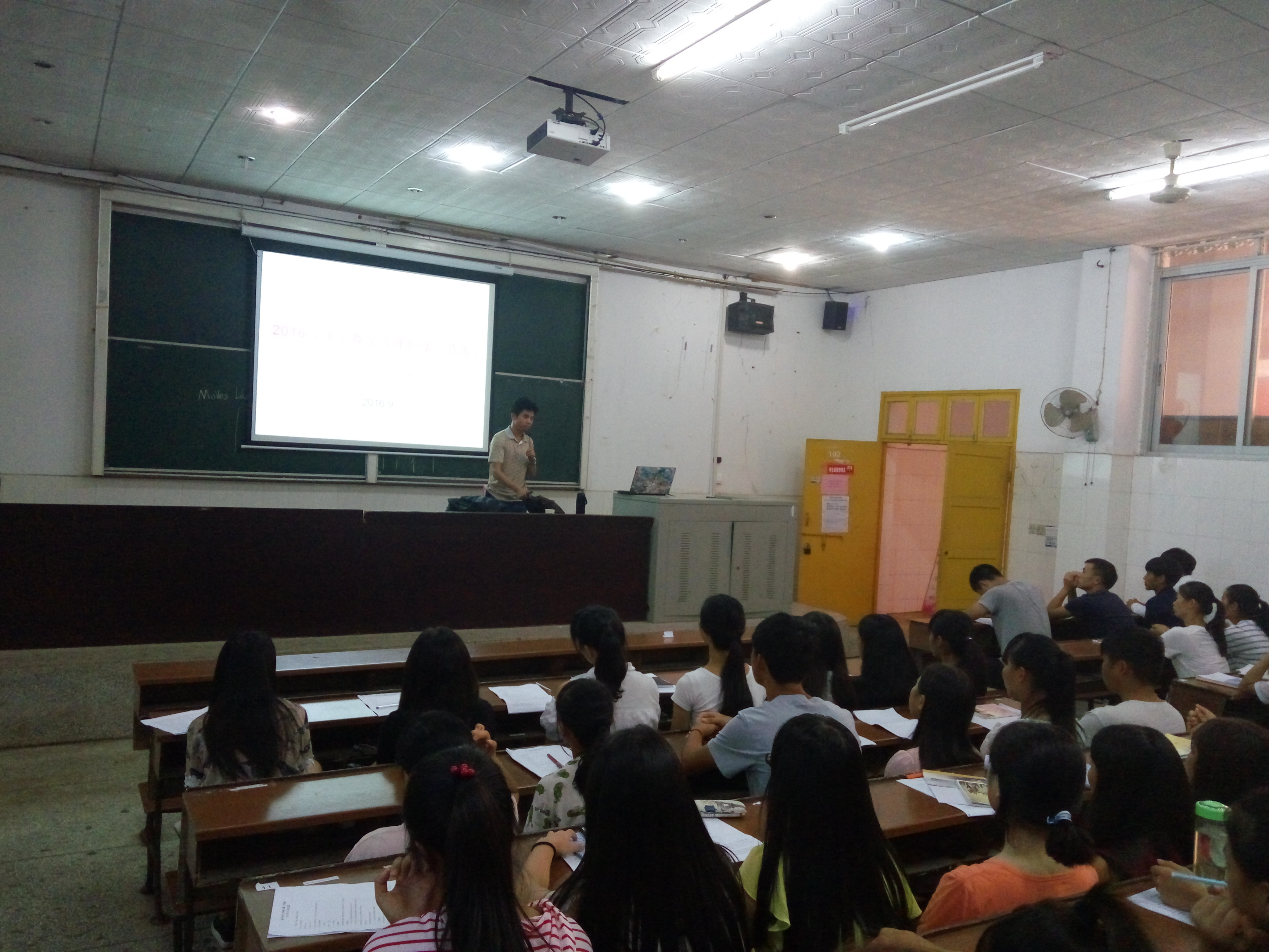 9月13日,经管系2016级新生教学管理制度学习讲座分别在2-206和2-102教室召开,本次讲座由教务办许艳老师担任主持,我系全体2016级高职新生参加了会议。 本次讲座在上午和下午分批进行,我系教学副主任薛建宏老师结合经管系的专业特色,就新生们在校期间的学习纪律、成绩、日常考核、升留级等方面的教学管理制度进行了全方位的介绍与解答。 通过薛建宏主任的详细讲解,不仅使新生们对教学管理的制度有了深入了解,还对提高我系教学管理水平起到了促进作用。(图/文 许艳)