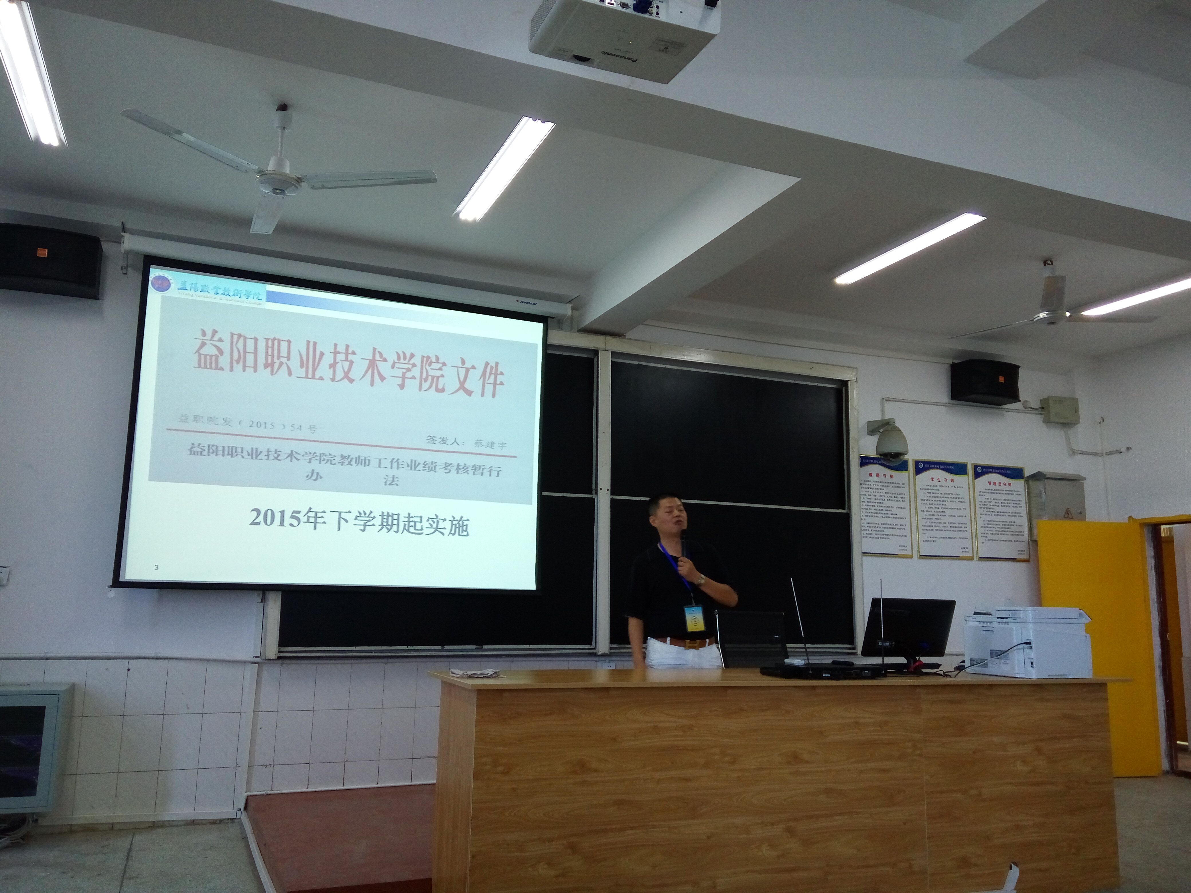 2016年8月30日下午,经管系在第二教学楼704教室召开了本学期第二次教职工大会,会议由经管系系主任吴自力主持,学院组织宣传人事处处长黄建书、组织宣传人事处副科级干部王倩、经管系全体教职工及部分在我系兼课的教师参加了会议。 首先,组织宣传人事处处长黄建书就推荐经管系会计教研室主任的人选问题进行了说明,我系副高以上职称的教师及副科以上干部参与了投票。 随后,教务办许艳老师对开学以来的教学查堂情况进行了通报。 最后,吴自力主任就《学院教师教学质量考核办法》向教师们进行了解析,经管系副主任薛建宏就教师授课计划的制定进行了详细培训。(图/文 许艳)