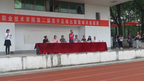 5月19日下午,由基础课部主办的学院第二届男子足球比赛暨球员选拨赛开幕式在学院足球场隆重举行。学院潘访华副院长、基础课部杨长虹主任、学生保卫处副处长欧仕荣老师、基础课部体育教研室主任罗景老师以及各系学工办负责人和老师出席了开幕式。 仪式在节奏欢快的运动员进行曲中拉开序幕,整个开幕式过程组织有序、气氛热烈,各代表队的球员们更是斗志昂扬、热情涌动,他们一个个迈着整齐的步伐,昂首阔步,走向主席台前。潘访华副院长在开幕词中简明扼要的阐释了足球运动所具有的无穷魅力和深刻内涵,并表达学院各级领导对我院校园足球运动发展的关心和支持,并提出了下一步工作的要求和希望。体育教研室罗景主任就举办本届足球比赛的目的和在比赛过程中的纪律及要求做了特别的说明。随后学生裁判员代表洛桑尼玛和运动员代表陈洪海分别上台庄重宣誓。仪式过后,迎来了本届比赛的揭幕战,首场汽车系代表队VS生信系第二代表队。(图/文 谢望喜 罗景)