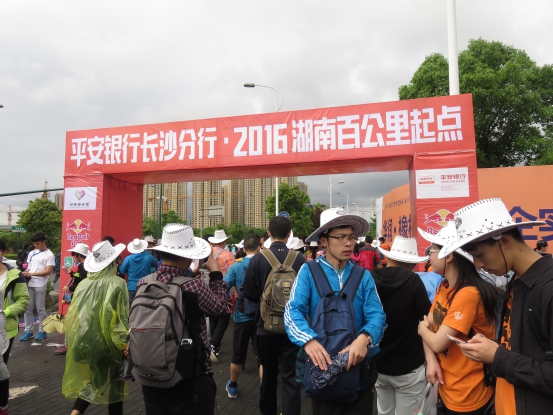 4月16日上午八点,2016湖南百公里在雨中开拔。