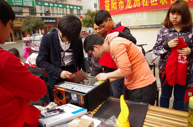 3月是学雷锋月,3月6日上午,生物与信息工程系计算机创业基地全体成员及生信系团学会部分成员与益阳市龙洲社区在北美阳光城联合展开了“三月阳光 你我相约”的义工服务活动。 全本成员到达后,经过迅速的场地布置,同学们正式开展了这一天的活动。本着“学习雷锋、为民服务”的宗旨,同学们服务意识与热情都很高,在无私奉献的同时提高了同学们的动手能力,精湛了自己的技术,更为社会传播了正能量。同学们无偿的为社区的市民们维修电脑14台,上门服务3次,修剪院子一处,还接洽了2个需要园林技术实习学生的园林公司。本次活动一直维持到了下午4点,得到了社区居民的一致好评。社区领导希望我们能经常开展这样的义工活动。 雷锋精神是中华民族传统美德的一种积淀,是一种随着时代进步而不断发展的与时俱进的精神。雷锋那种全心全意为人民服务,把有限的生命投入到无限的为人民服务中去的精神,那种干一行爱一行,立足岗位艰苦奋斗的敬业精神,那种对同志、对群众像春天般温暖,舍己为人、助人为乐的精神,都是在构建和谐社会中必须大力发扬和倡导的。希望同学们领悟到了这种精神,并时刻保持这种精神,将雷锋精神传承下去。 生.宣传部 2016.3.6