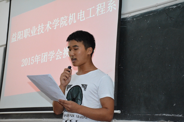 本网讯(通讯员 习颖)9月17日,机电工程系在一教101教室举行2015年团学会换届选举大会,莅临大会的有副院长蔡超强、学生处处长周建、系主任曾朝辉、系教务主任徐晓昂、学生处干事蒋斌,系学工办主任欧仕荣,40余名团学会成员参加换届选举,大会由欧仕荣主持。 会上,首先由上一届团学会代表王雷向全体师生作工作报告,对过去一年取得的成绩进行回顾和总结,分析了目前工作中仍然存在的一些问题,并对今后团学会的发展提出自己的见解和期望。蔡院长等人为上届团学会成员颁发了聘书。随后,竞选正式拉开帷幕。在现场投票、辅导员推荐、系领导综合考察的基础上,最终确定了10名同学组成新一届部长委员会。新任团学会书记徐广代表全体成员表态,将抓好日常学生管理工作,打造学生精品社团,丰富第二课堂活动,营造健康向上的学习氛围。 最后,系学工办主任欧仕荣、系主任曾朝辉、学生处处长周建、副院长蔡超强分别作了精彩发言。欧仕荣对团学会干部提出三点要求,一是以身作则,充分发挥示范带头作用;二是不断提高自身综合素质;三是努力学习,正确处理学习与工作的关系。曾朝晖希望学生干部在以后的工作中,做一个吃得苦,敢创新,有实干精神与全局观念的人。周健强调,学生管理工作要注重班团干部、寝室长队伍的建设,以广阔的胸怀和高度的责任感为同学服务。蔡超强作最后总结,祝贺机电工程系团学会注入新的血液与活力,他希望新一届团学会严格要求自己,不断加强学习,肩负起学生干部应有的使命与责任,使学生管理工作更上一个台阶。