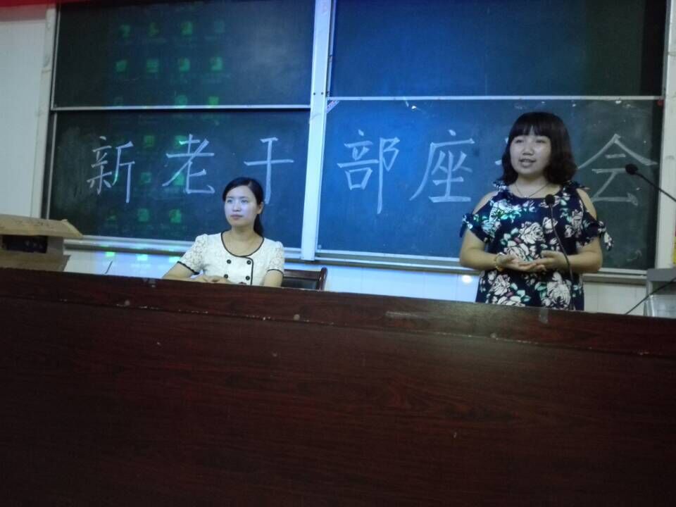 团学会新老干部座谈会 在过去的团学会老干部一直是我们学习的榜样,虽然他们已经毕业了,但是他们的精神,留下的事迹是不可抹去的,因此特邀请了以前的老干部参与此次的座谈会,参加此次座谈会的还有我系的刘慧予科长,老干部们用自己的经历与经验告诉我们应该去做什么才是正确的。 座谈会现场 前体育部部长雷莎莎学姐的演讲 前心理健康服务部部长杨专学姐讲述她的经历与经验 前学生会副主席田会明学长的演讲