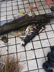 上图为水池里的垃圾以及被丢在水池里的死狗和纸牌。