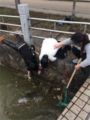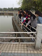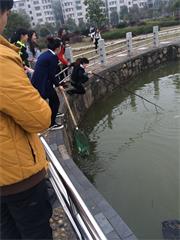 我们可爱而又不辞辛苦的肖淑钦同学跟杨景同学正在打捞水池里的垃圾。她们那身姿着实让人为他们捏了一把汗,可她们却不怕脏不怕累。实在是我们学习的好榜样。