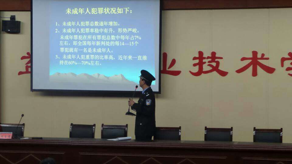 为进一步推动全院青少年学生学法律、明事理、守法纪,养成良好的行为习惯,11月11日,学院基础课部思政教研室特别邀请湖南省未成年犯管教所法制教育基地三级警督、教官郭晓涵同志为我院2013级、2014级中职学生代表举行专题法制教育讲座。本次讲座从真实案例展示、法律知识讲解、违法行为防范三个方面展开,使各位同学深受教育!学院副院长潘访华、学院副院长杨建华,基础课部主任杨长虹和思政教研室全体老师参加了本次活动,潘访华副院长还就学生学法守法、行为规范问题做了重要讲话!(文/陈 娟)