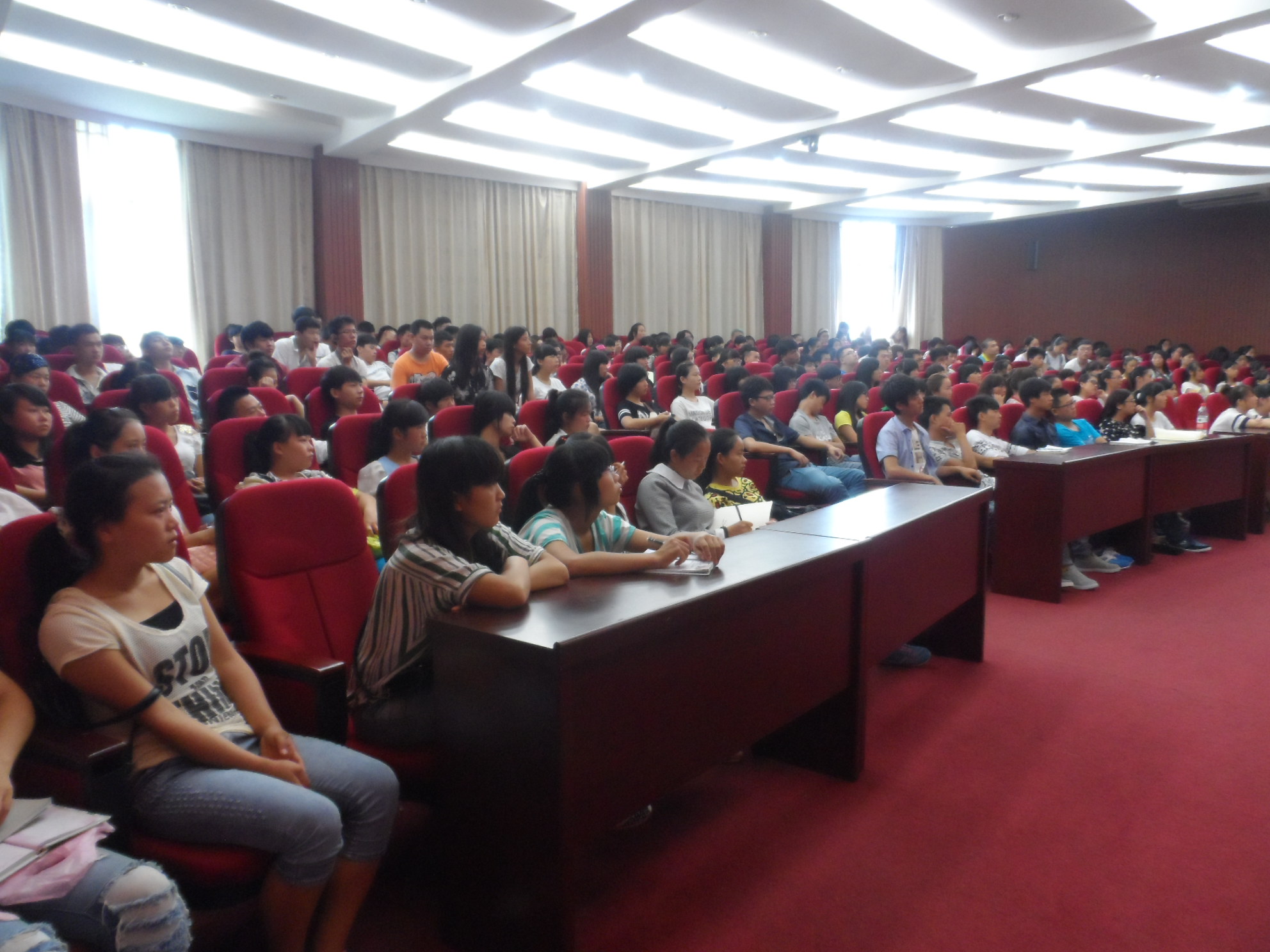 2014年9月1日上午8:30-11:30,经管系2014级全体新生在六教一、二报告厅认真聆听了一场“人生新起点”专题报告会。 报告会由系主任吴自力副教授主持,由杨建华副院长主讲。 杨建华副院长的报告从观看俞敏洪先生的励志演讲视频开始,结合案例、事实、故事以及国家政策等,阐述了人生的真谛、完美人生的内涵、如何实现人生价值的有效途径(加强学习、勤于实践、敢于创新)以及如何努力把握好人生的新起点等。杨院长的报告旁征博引、生动风趣、激情洋溢,不时得到学生的热烈掌声和共鸣。 吴主任在会上简单介绍了经管系的基本情况,对入学教育安排作了说明和要求,并针对外地学生特别是少数民族学生明显增多的情况提出全体新生要尽快学会适应新环境,学会包容他人的性格、缺点和习俗,学会理他人。 (文/吴自力 图片/张嫔靓)