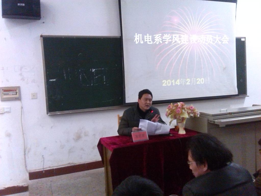 2月20日晚上7:00,机电工程系在四教107教室召开了学风建设动员大会。机电系主任曾朝晖、副主任欧仕荣、教研室主任徐晓昂、辅导员等以及11、12、13级全体学生参加了此次大会,会议由系学工办主任谌少华主持。 首先由机电系学工办主任谌少华做动员发言。在发言中他表示,同学们只有学习态度端正,才能充分利用大学期间的宝贵时光,真正学到扎实的知识,充分发展自己的智力和能力,有效地开发出创新精神,完成学习任务,成为社会需要的人才。 12110班学生代表王剑华代表团学会宣读了倡议书,向全体团员青年、学生党员、学生干部发出倡议,号召大家从自身做起,从小事做起,支持系部学风建设,共建机电系优良学风。 最后,系主任曾朝晖做总结。他在讲话中指出,学风建设不仅关系到学生个人的成长成才,同时也是学院的重点工作之一。机电系学风建设也将从两个方面着手,一方面要加强学生思想政治教育和管理工作,使学生树立诚实守信、奋发有为、勤于学习、勇于创新的良好学风;另一方面要加强教师职业道德建设,使教师树立爱岗敬业、为人师表、与时俱进、严谨笃学的良好教风。 听完报告后,同学们表示一定要响应号召、奋发学习、共建我系优良学风。