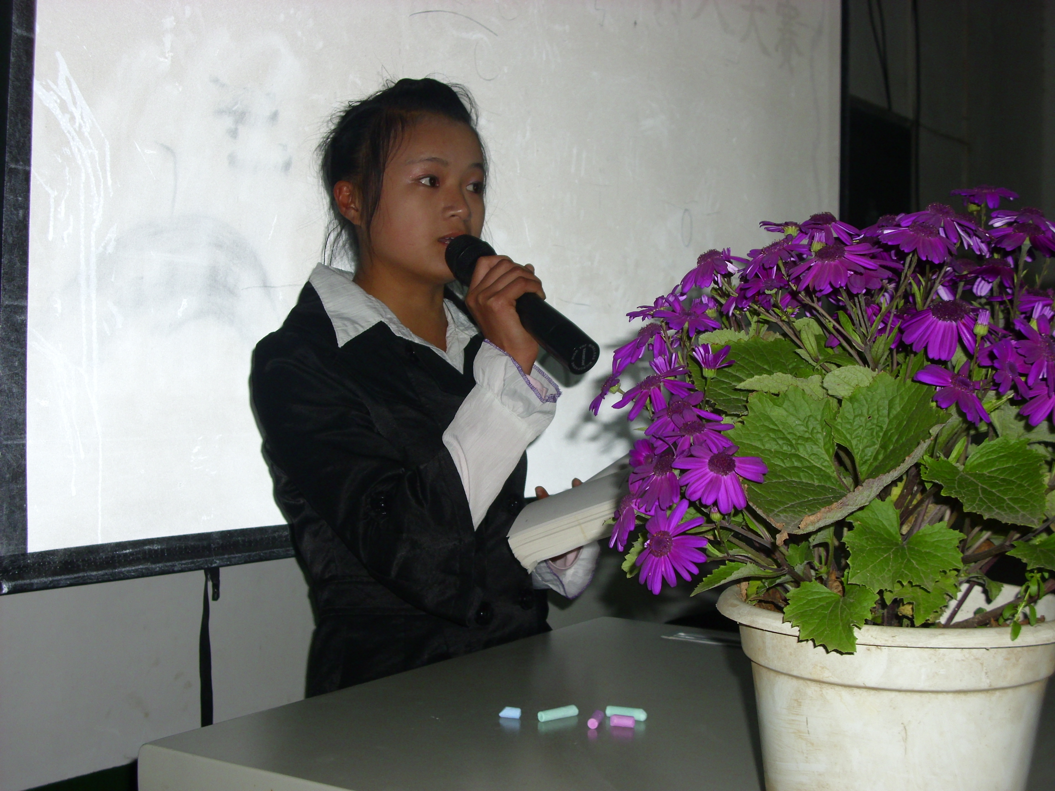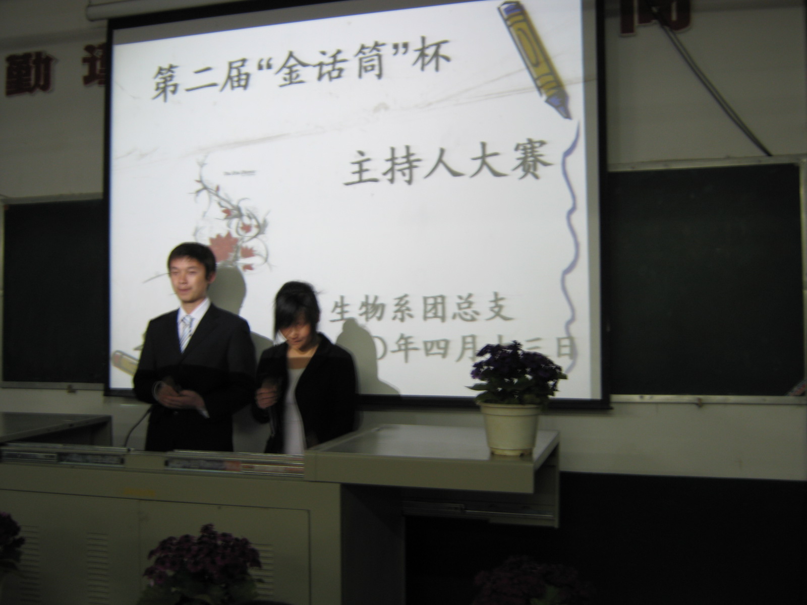 生物系“金话筒”杯主持人大赛 对于每一个大学生来说,舞台的每一次闪耀都等于一次展示自我的机会,而“金话筒”杯主持人大赛就是这样的一个舞台,一个可以展示自我的舞台。 生物系举办的第二届“金话筒”杯主持人大赛于4月13日晚在一教113教室拉开了帷幕。本次比赛邀请了系部主任、辅导员作为嘉宾,由院团总支书记、各系团总支副书记、院广播站站长、副站长担任评委,本着智慧与才华并重的原则,对进行决赛的十位选手从整体形象、普通话、语言应变能力、主持活动会场气氛和综合能力五个方面进行打分。经过三个环节的激烈角逐,十号选手陈秀玲同学以其甜美的声音和秀丽的容貌以及沉稳的应变能力从参赛选手中脱颖而出荣获一等奖;柳斌林同学获二等奖;三等奖获得者李昊天同学。