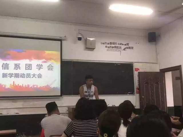 8月29日下午16:00,在益阳职院第一教学楼103室,召开了生物与信息工程系2019年下学期团学会期初工作动员大会。生信系副主任陈瑛、系学工办主任蒋威、学工干事龚倩、系团总支副书记刘邹、辅导员老师代表、全体团学会干部出席大会。团学会主席王经昊首先发言,对过去一年里团学会干部所做出的成绩予以肯定,倡导全体团学会干部继续发扬优良传统,积极做好自己分内工作,为本学期团学会工作继续倾情奉献! 系部团总支副书记刘邹,在动员会上强调要凝聚团队精神,与时俱进,务实创新,并表达了和团学会所有成员并肩作战、不辱使命的决心。 系学工办主任蒋威,对团学会干部在上学期取得的成绩予以表扬和肯定,并提出新的要求和希望。布置了团学会干部在迎新工作中承担的具体任务,希望全体团学会成员齐心协力,做好2019届大一新生的迎新工作。 系部副主任陈瑛,总结团学会上学期工作,对全体团学会干部所付出的努力表示感谢。在本学期的工作安排中,陈主任反复强调班风、学风、寝风、系风建设,倡导团学会干部带好头,真正起到示范引领作用;强调团学会干部要加强临场应变能力,团队凝成一股绳,让生信系的学工工作再上新台阶! 生·宣传部