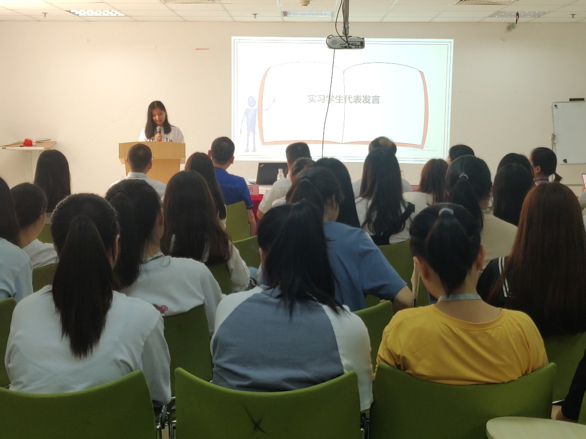 带队班主任姚梦涵老师主持大会,对已经度过的两个月实习生活,进行总结汇报。