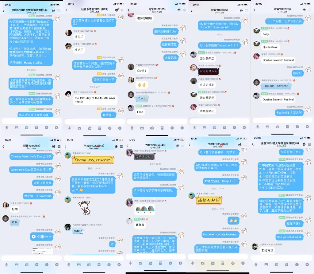 为了保证教学质量,王欢老师还在学生班级群中实时与学生们探讨教学内容,聆听学生反馈,将新学知识点充分融入日常学习生活,让学生们时刻“温故而知新”,实现实时“在线真实课堂”。课后,王欢老师还抽查学生掌握情况,对学生给予鼓励和引导,并针对性地进行拓展。王欢老师说,每一位学生的反馈,我都会仔细聆听,耐心回答,细心梳理,每一个反馈都是一个宝贵教学素材,也许就能给我们下一次的线上教学带来一些改进。