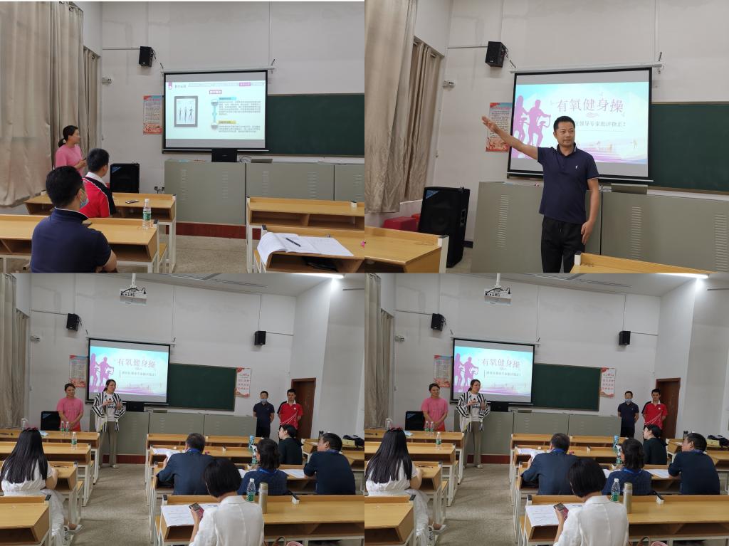 本次比赛参照省赛规则,参赛团队选取某门课程一个学期中连续、完整的12学时的教学内容完成教学设计、实施课堂教学、评价目标达成、进行反思改进。比赛分为现场展示和答辩两个环节。在第一个环节中,每个教学团队负责人介绍了教学实施报告的有关内容,另外两名成员分别针对两份参赛教案中的内容进行了形式为内容讲授、演示教学或课堂小结的模拟教授。在第二个环节,评委根据参赛团队提供的教学资料,围绕教学设计、实施课堂教学、评价目标达成等进行提问,团队成员根据评委提问进行答辩。比赛现场,4个教学团队胸有成竹、齐心协力,以优秀的个人素质、精湛的教学艺术,丰富的教学内容及创新的教学思维与设计,赢得了在场评委和观摩教师的高度肯定,充分展示了各自团队的教学风采。最终,四个参赛团队经过激烈角逐,大学体育参赛团队获得本次教师教学能力比赛一等奖。