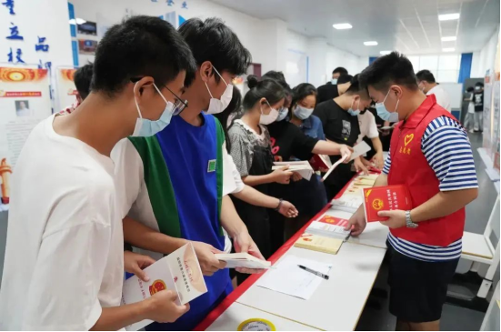 学生有序领取宣传手册