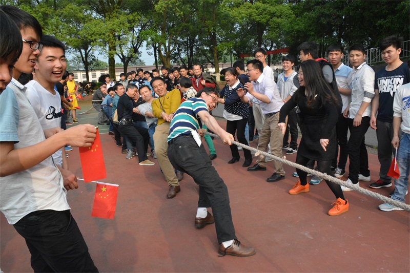 紧接着第二轮拔河比赛有序进行,双方队员紧握绳子,使出浑身力气,力争打败对手,而场外拉拉队员也不示弱,热情高涨地为参赛者们呐喊助威。经过激烈的角逐,机电15123班一路披荆斩棘,夺得该比赛冠军。依据比赛规则,冠军队伍与教师队伍进行终极PK,现场紧张热烈的气氛达到高潮,教师队伍最终不负众望,一举夺冠。