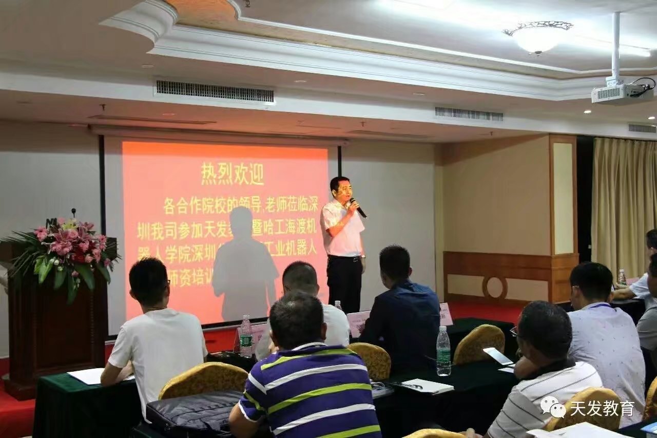8月7日,机电教研室主任曾庆军带队赴合作办学单位深圳市天发教育投资有限公司,参加其联合哈工海渡工业机器人学院深圳分院组织的首届师资培训班。