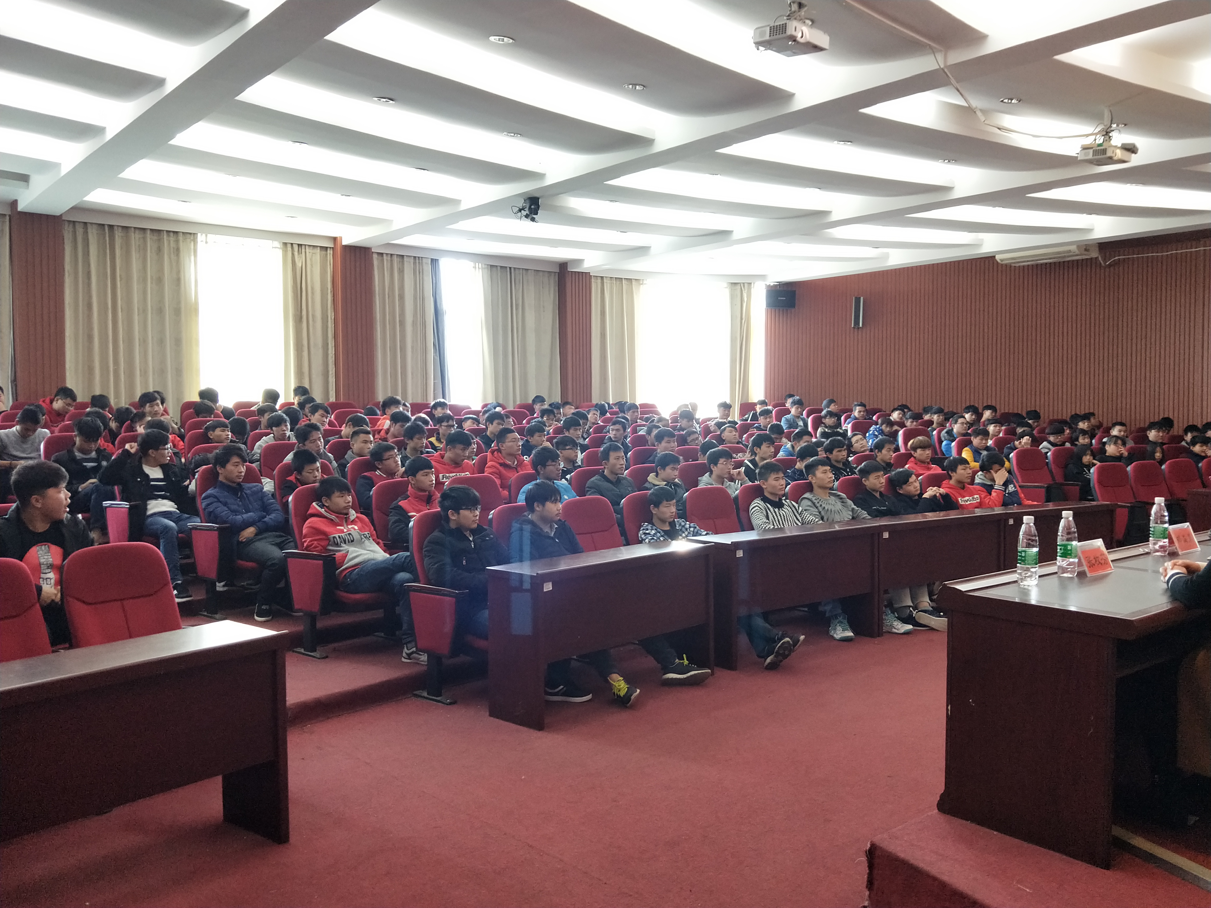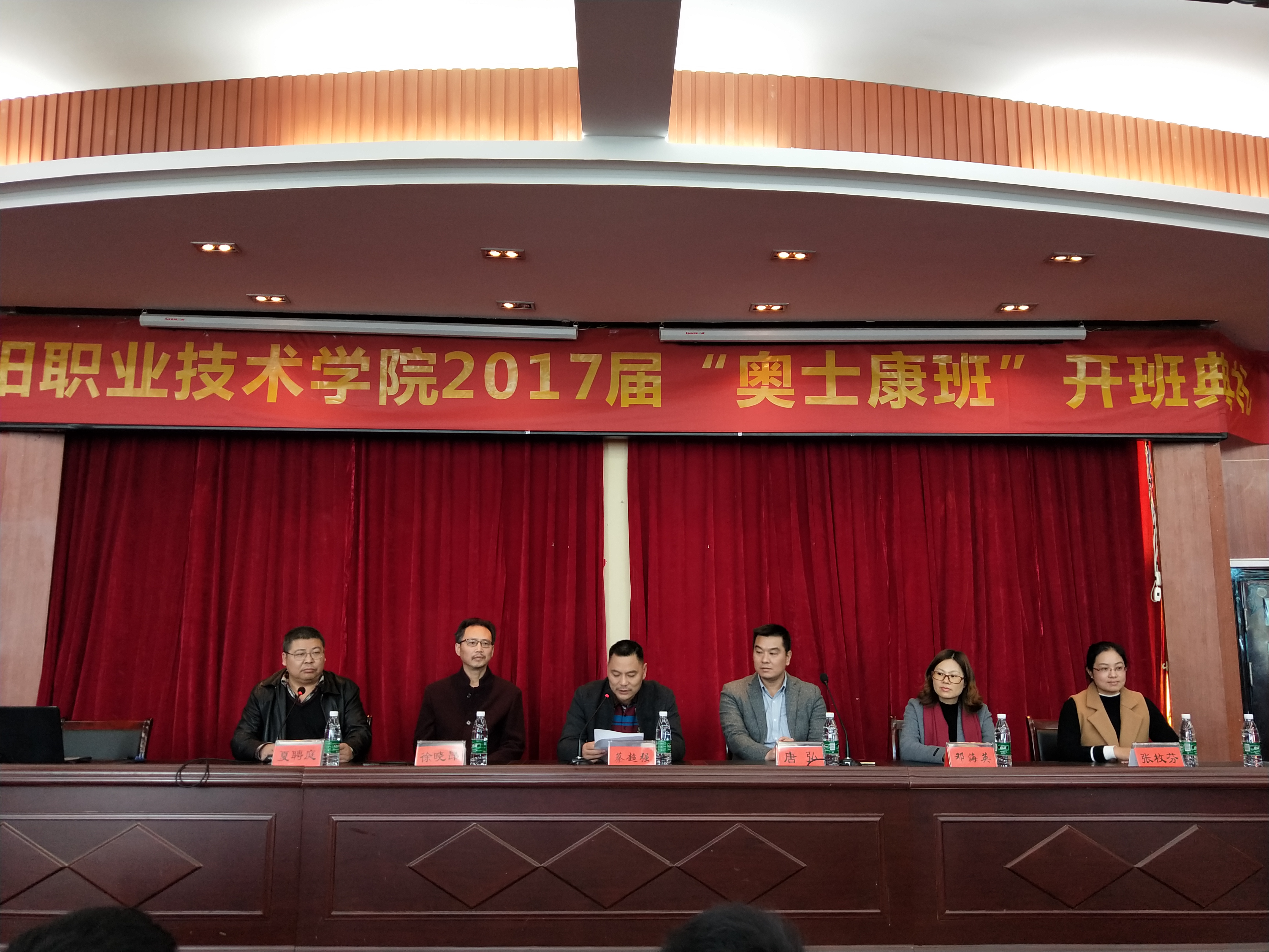 蔡院长首先对奥士康领导亲临我院为奥士康班同学们带来精彩的企业文化讲座表示热烈欢迎和诚挚谢意。校企合作、产教融合是高职院校教学改革的必经之路。学院在2015年便与奥士康科技股份有限公司签订校企合作战略协议,分别在15级和17三年高职和五年高职四个冠名班级 。在随后的一年时间里,学院与奥士康公司组织了多次交流座谈、学生到企业参观和篮球友谊赛等一系列活动。今年,15级两个奥士康班更 是到奥士康公司参加跟岗实习至今。学校和企业都高度重视,举办了拜师仪式,充分落实了现代学徒制。10月份,在跟岗实习的同学中 挑选了27位工作出色表现优异的同学组建班组长培训班,公司高层领导更是抽出宝贵时间,亲自授课,为实习的同学们未来发展营造了良好 氛围。最后,蔡院长对企业高层赴我院开展文化讲座再次表示感谢,并预祝本次活动圆满成功。然后,机电系党支徐晓昂书记对各位同学勉励,殷切希望同学们认真学习,奋发有为。