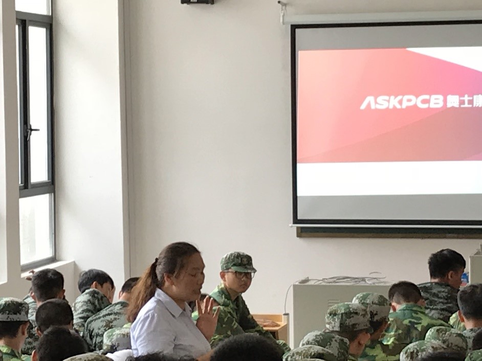 9月19日中午,奥士康科技股份有限公司人力资源部一行来对还在进行军训的2018级机电一体化新生进行企业文化宣讲,宣讲得到了大部分同学的认同,宣讲效果很好。这也标志着我系与奥士康现代学徒制培养走上正轨。