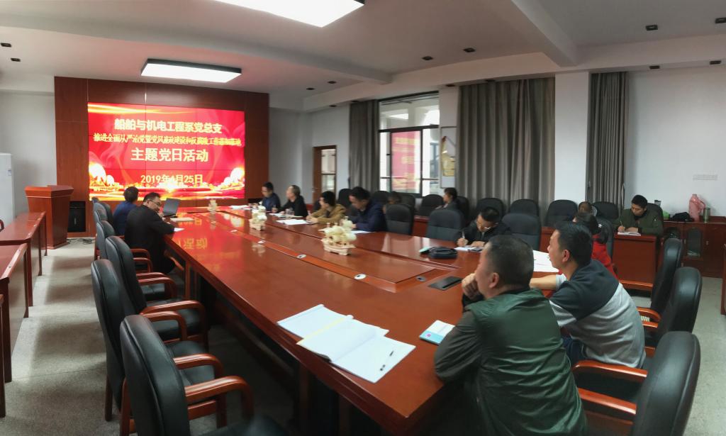 4月25日下午,船舶与机电工程系开展了4月份支部主题党日活动,围绕“推进全面从严治党暨党风廉政建设和反腐败工作落细落地”主题,学习了《习近平总书记论作风建设:以踏石留印、 抓铁有痕的劲头抓作风建设》和《如何落实全面从严治党》,学习了习近平总书记系列重要讲话。