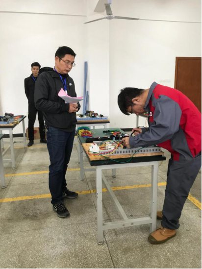 上午技能考试除了一个项目没有完成之外,其余考试项目全部完成。下午工业机器人技术专业专家组对工业机器人专业组织评审、举行学生座谈会,机电一体化技术专业专家组继续余下项目的技能考试。评估、考试结束,专家组参观实验实训条件。