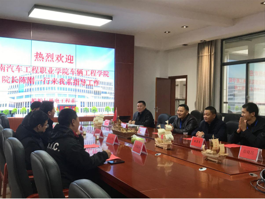 11月27日湖南汽车工程职业学院车辆工程学院院长陈刚、副院长侯志华、实训教师尹子中、实验管理员陈晓东等一行到船舶与机电工程系调研,学院副院长蔡超强、教务处长张雪文、系总支书记胡大有、主任徐晓昂、汽车工程系主任蔡建交等参加接待。