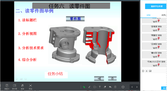 利用腾讯直播课堂,直播以集中讲授和答疑为主,学生以听讲和参与讨论为主,“教师精讲——师生互动——及时反馈”成为课堂主要模式。这种模式比较合适以理论为主的课程,对于实操作性较强的课程如AutoCAD来说,遇到的问题就比较突出,有的学生没电脑,学习教学视频时,感觉没有体验感,加之网络拥堵,教学起来有点力不从心。面对问题,就请教专家老师,采用分享屏幕,由老师操作软件进行实操演示,效果变好很多。